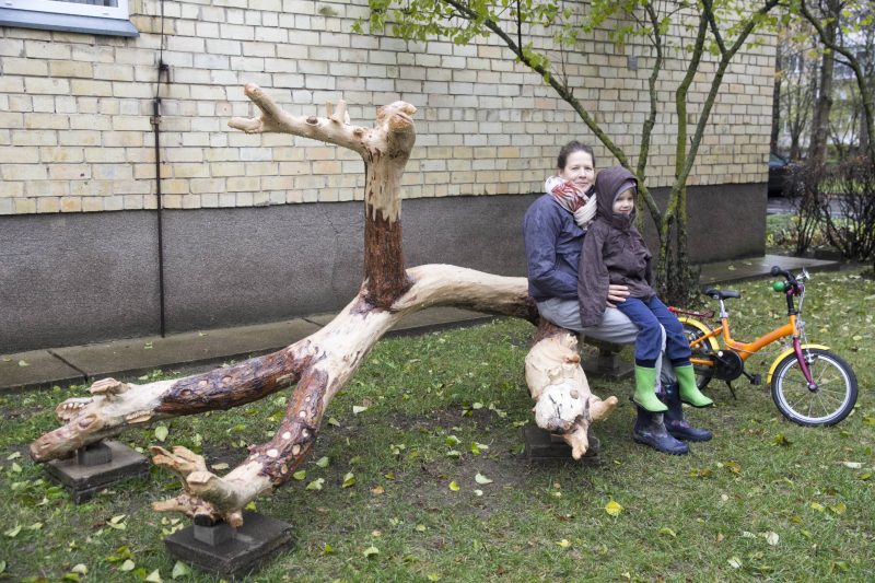 „Netoli auga gluosnis, kuris šią vasarą gerokai aplūžinėjo. Pastebėjusi ant žemės didelių medžio šakų, tuoj pat susitariau su savo kvartalo bendruomene, kad jas panaudotume menui. Parsivilkusi vieną šaką ėmiau galvoti, ką iš jos padaryti. O viską įgyvendinti man padėjo drožinėti mokantis jaunas pagalbininkas“, – apie savo idėją pasakojo panevėžietė.