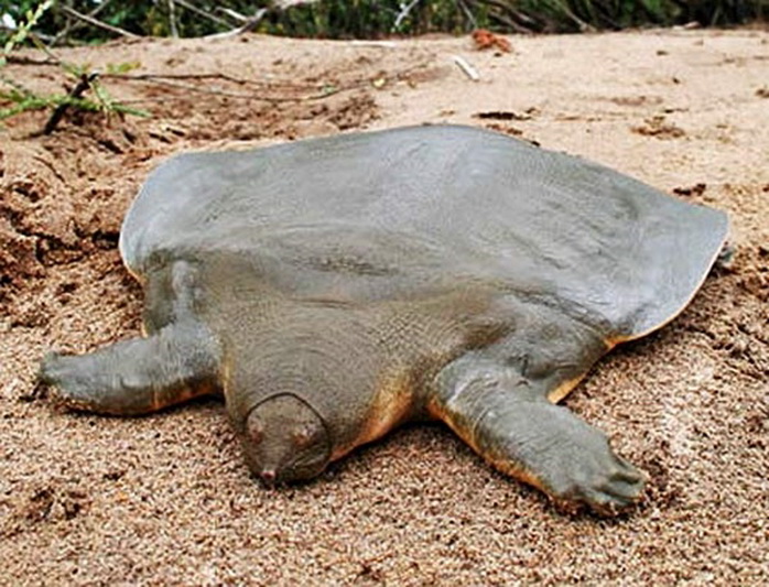 Įprasta manyti, jog visi vėžliai turi kietą kiautą, kuris tarnauja jiems apsisaugant nuo pavojų gamtoje. Tačiau šis vėžlys, dažniausiai sutinkamas sausumoje, gamtos kiautu neapdovanotas. Minkštaodžiai vėžliai gali užaugti iki 2 metrų ilgio ir sverti net apie 50 kilogramų.