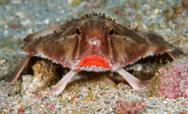 Išties ši keistuolė žuvis tarsi padažytomis raudonomis lūpomis – prasta plaukikė, užtat išmoko greitai ropinėti dugnu. Tiksliau, tai – žuvis su kojomis. Ji niekaip neapsisprendė, gyventi sausumoje ar jūroje. O jei rimtai, ši žuvelė aptinkama vandenyno dugne aplink Galapagų salas. Aptikę šią rūšį mokslininkai įvertino, jog ji labai neįprastos morfologijos.