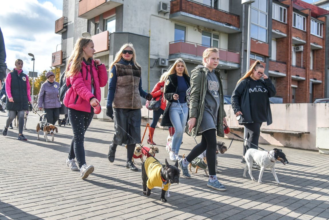 Vedini amsinčiais, įvairaus plauko ir dydžio keturkojais, jų augintojai eiseną pradėjo Kranto gatvėje, apsukę Laisvės aikštę, Senvagę, vėl sugrįžo atgal.