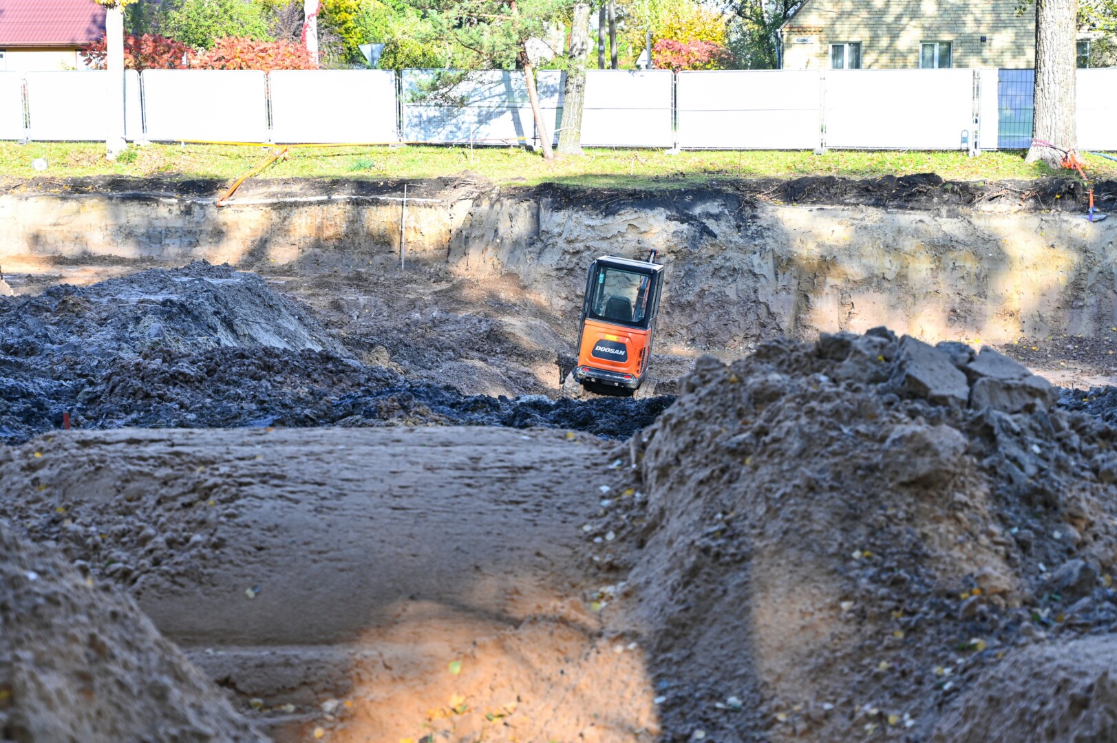 Šiandien aštunta diena, kai A. Baranausko pušynėlyje, ties Aguonų ir A. Baranausko gatvių kampu, dirba sunkioji technika.