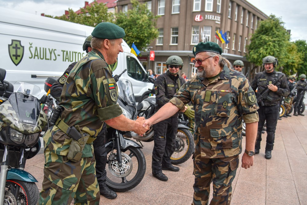 Valstybės dieną vidurdienį prasidėjęs žygis motociklais per Lietuvą skirtas ne vien šiai progai paminėti. Jo metu visuomenė supažindinama su Šaulių sąjungos veikla, puoselėjamos senosios tradicijos, kartu ir renkama parama Ukrainai.