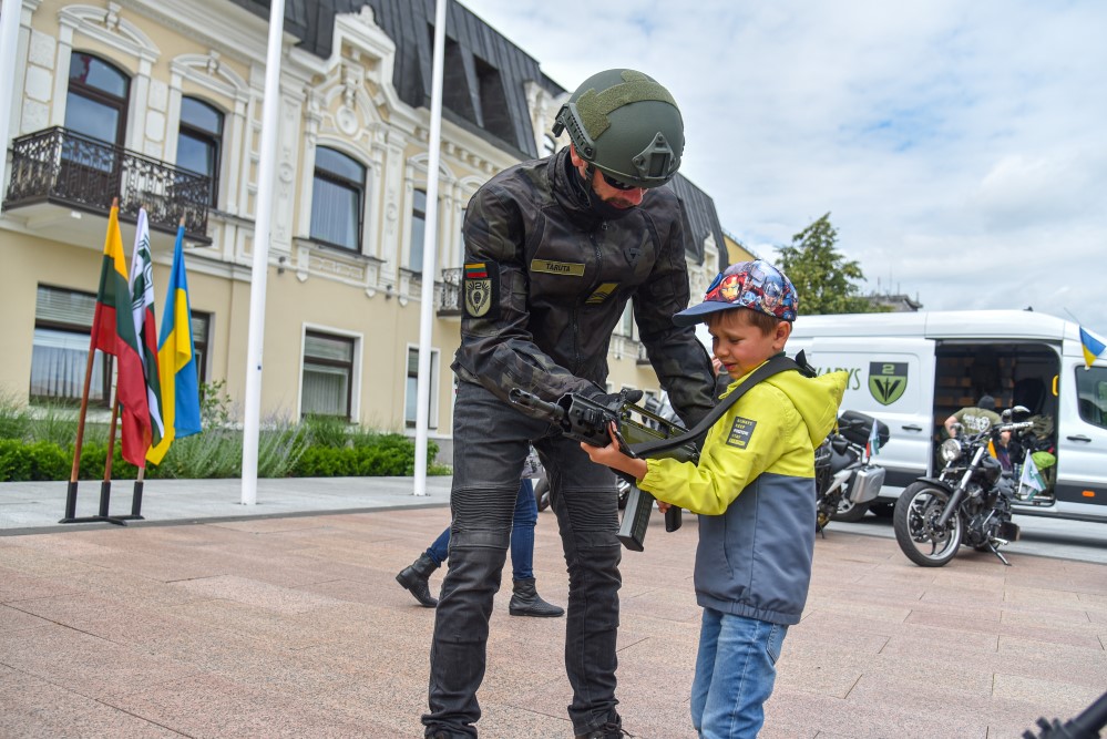 „Kad ir keista, labiausiai motociklais ir ginklais domisi mamos“, – būtent jos, šypsosi motošaulys, pirmosios padrąsina vaikus prieiti.