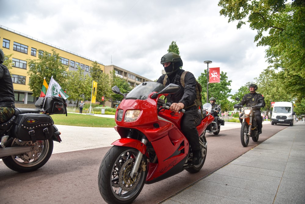 „Pratybose dalyvaujame kituose daliniuose, bet čia susirinko motociklais besižavintys, laisvalaikiu baikeriaujantys entuziastai“, – aiškino žygio dalyvis.