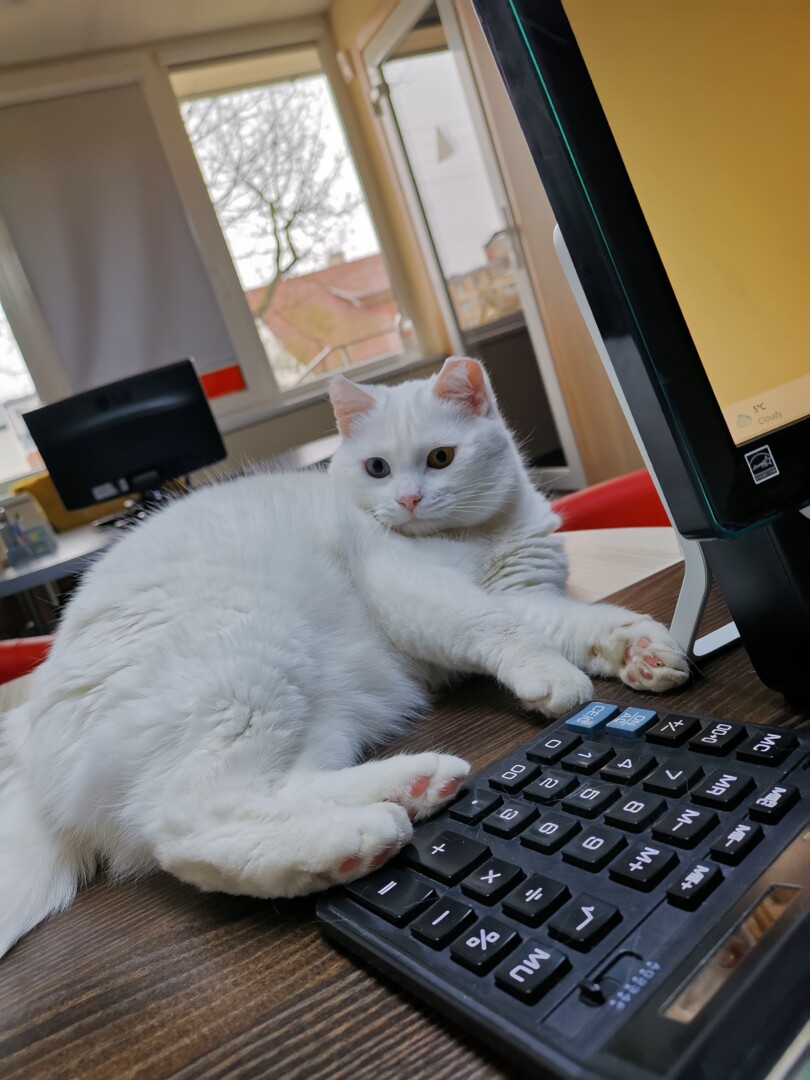 Deja, kitų katinų draugija ją labai erzino, baltapūkė vis nerado sau vietos ir kentėjo. Tad prieglaudos buhalteriją tvarkančios įmonės vadovė nutarė šiai laukinukei suteikti galimybę augti jų biure.