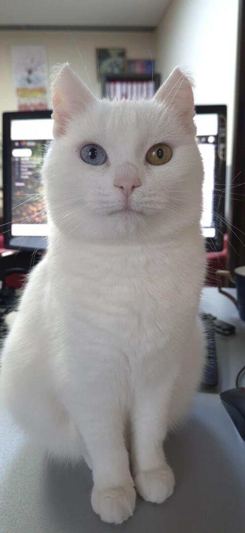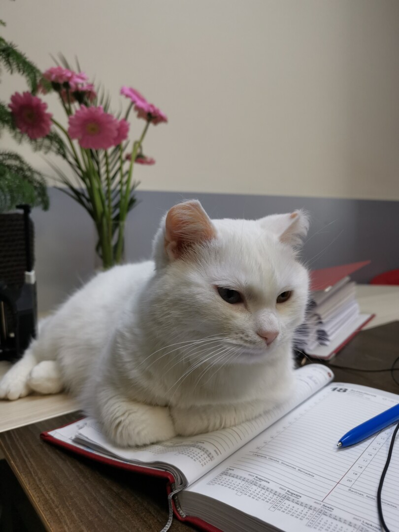 „Man tie vadinamieji kaimietukai patys gražiausi. O mūsų Nilka yra visiškai balta ir turi ypatingas puošmenas – skirtingų spalvų akytes. Buvo labai gaila, kad tokia graži katytė neturi namų, prieglaudoje jai niekaip nepavyko sutarti su kitais katinais. Pajutau, kad turiu ją pasiimti, ir taip ji atsidūrė mūsų biure“, – Nilkos atsiradimo istoriją pasakoja R. Samoilova.