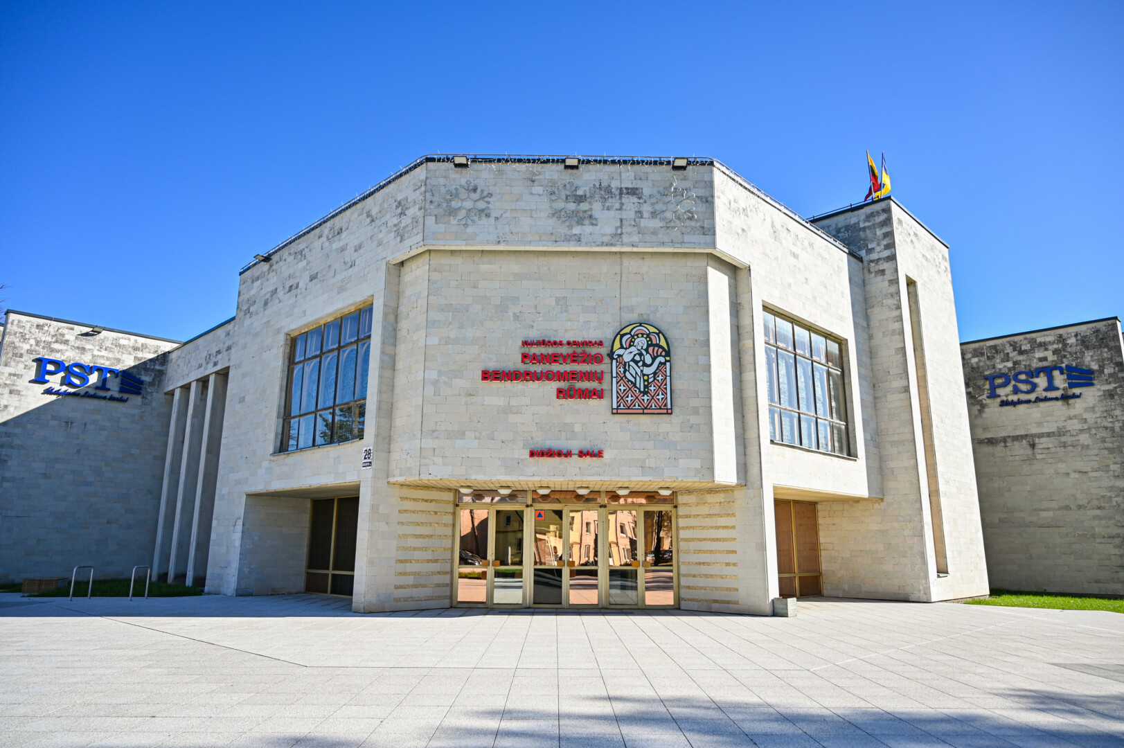 Šis pastatas buvo išskirtinis visoje Lietuvoje – jo išorėje lankytojus pasitinka Rytų Vokietijoje pagamintos veidrodinio stiklo vitrinos, o pagrindinės salės fojė langus puošia G. L. Baginskienės ir kitų autorių vitražai.