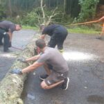 Nieko nelaukę patruliai patys ėmėsi valyti kelią nuo užgriuvusių medžių, netrukus į pagalbą atskubėjo Gegužinės ir Tiltagalių ugniagesių gelbėtojų savanorių komandos, vėliau prisijungė Panevėžio miesto ugniagesių brigada.