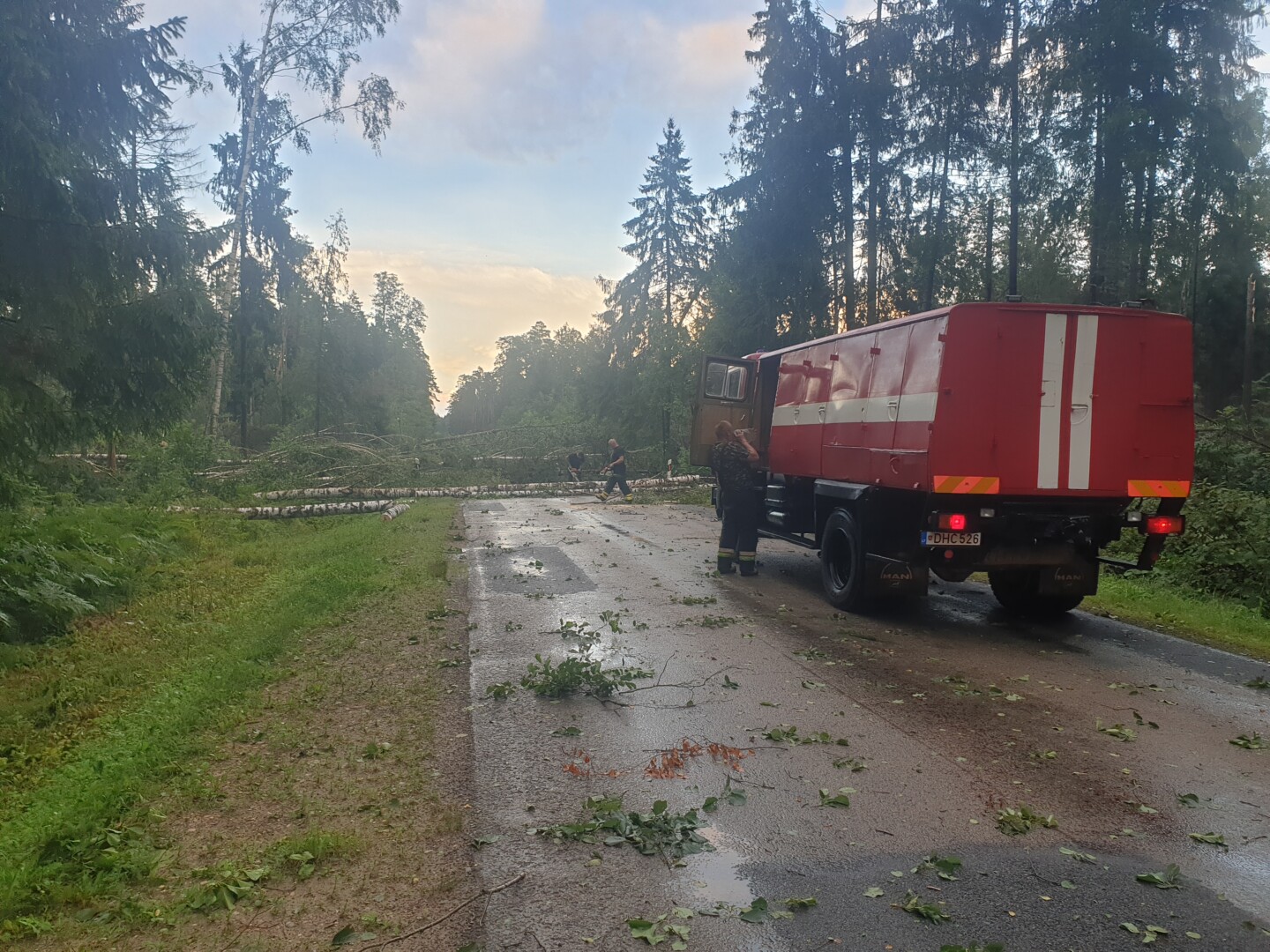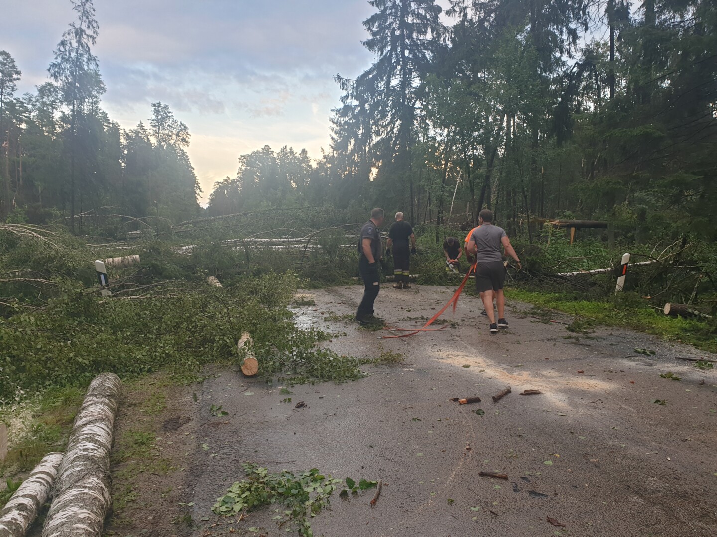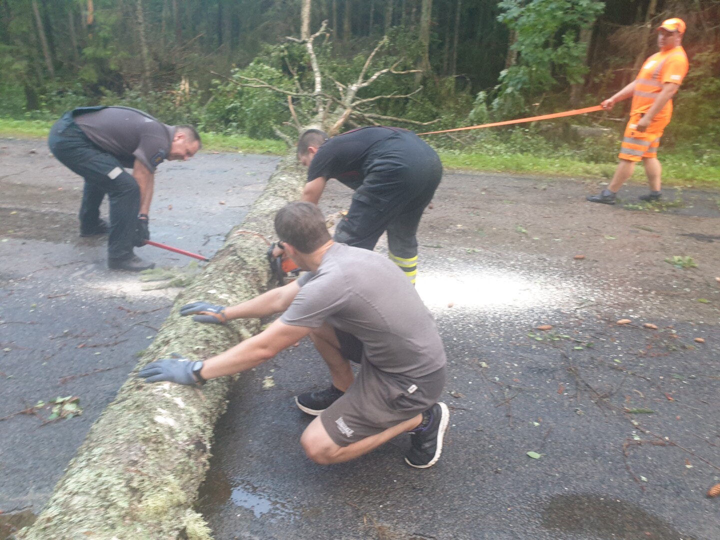 Ugniagesiams ir policininkams į pagalbą atskubėjo ir du savanoriai Deividas bei Gediminas, kurie, neskaičiuodami nei savo laiko, jei jėgų, dirbo kartu su pareigūnais šalinant kelią užblokavusius medžius.