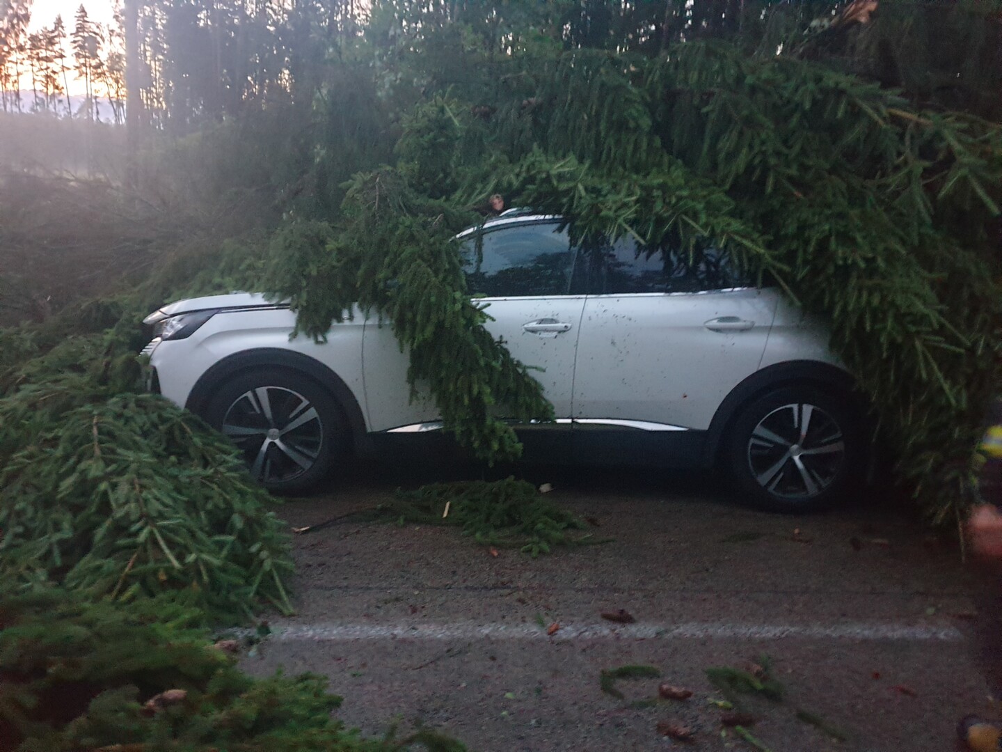 Nemažai žalos šeštadienį pridariusios audros išverstas medis Žaliojoje girioje užgriuvo automobilį su žmonėmis. Jų vaduoti vykusiems policijos pareigūnams, kad pasiektų nelaimėlius, patiems teko kelias valandas traukti medžius nuo nepravažiuojamu tapusio kelio.