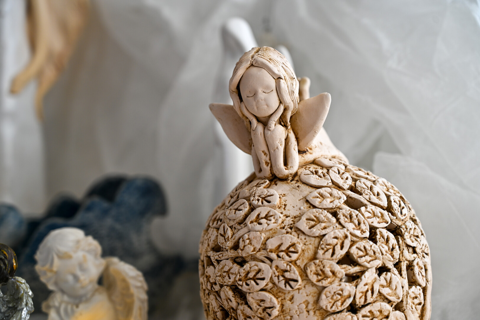 Parodoje eksponuojami patys įvairiausi angelai – nuo mažiukų, nedaug sveriančių, iki nemenkų, sunkių. Yra medinių, šamotinių, gamintų iš stiklo, keraminių. Greta jų – ir angelai-žvakės ar angelai-žvakidės, taip pat angelai su trispalvėmis.