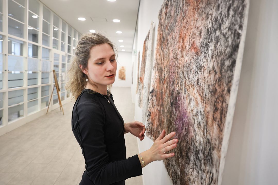 Prancūzijoje nutūpusi panevėžietė Erika Povilonytė Panevėžio apskrities Gabrielės Petkevičaitės-Bitės viešojoje bibliotekoje pristatė kūrybos parodą „Popierius, akmuo, širdis“.