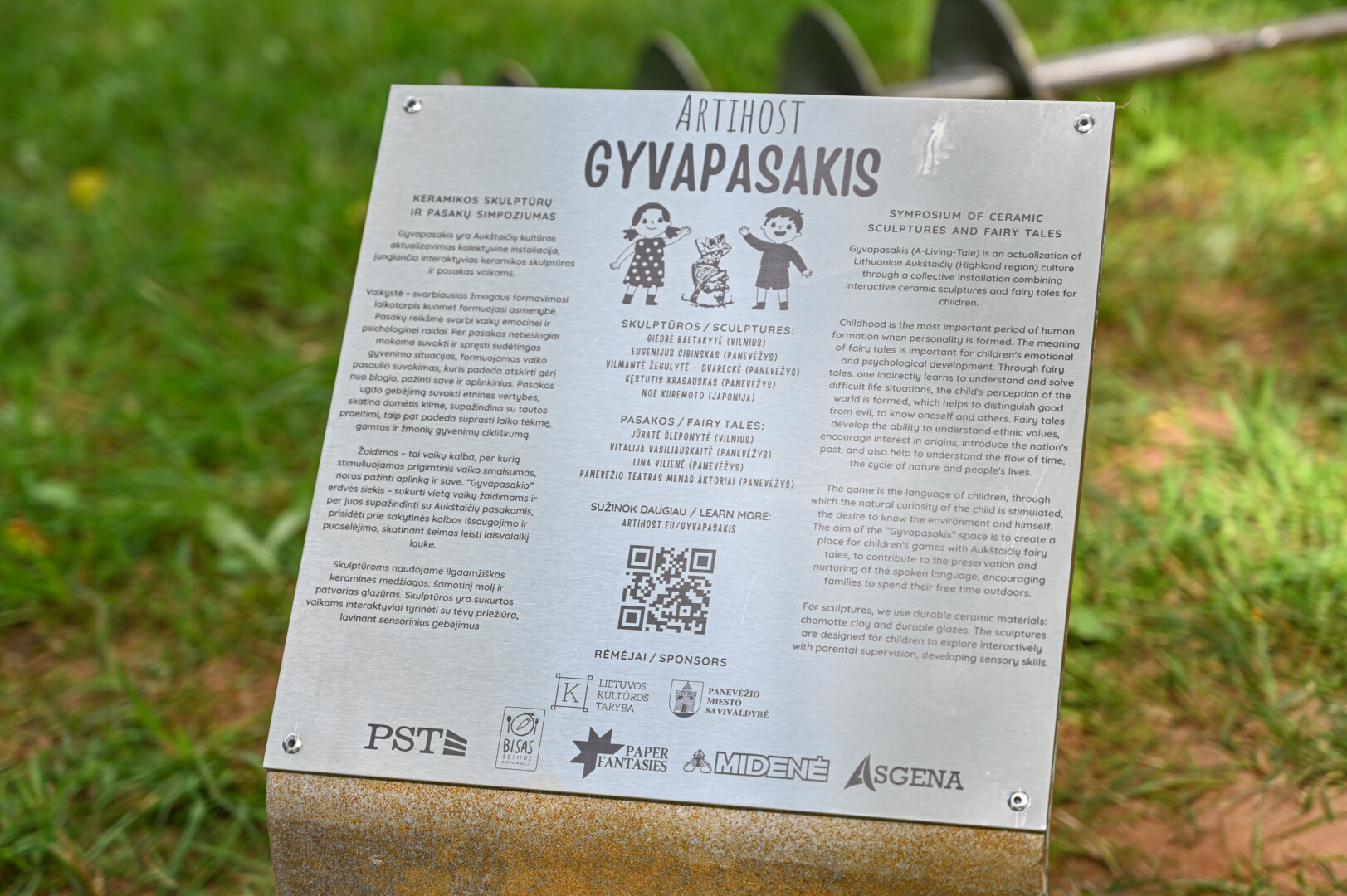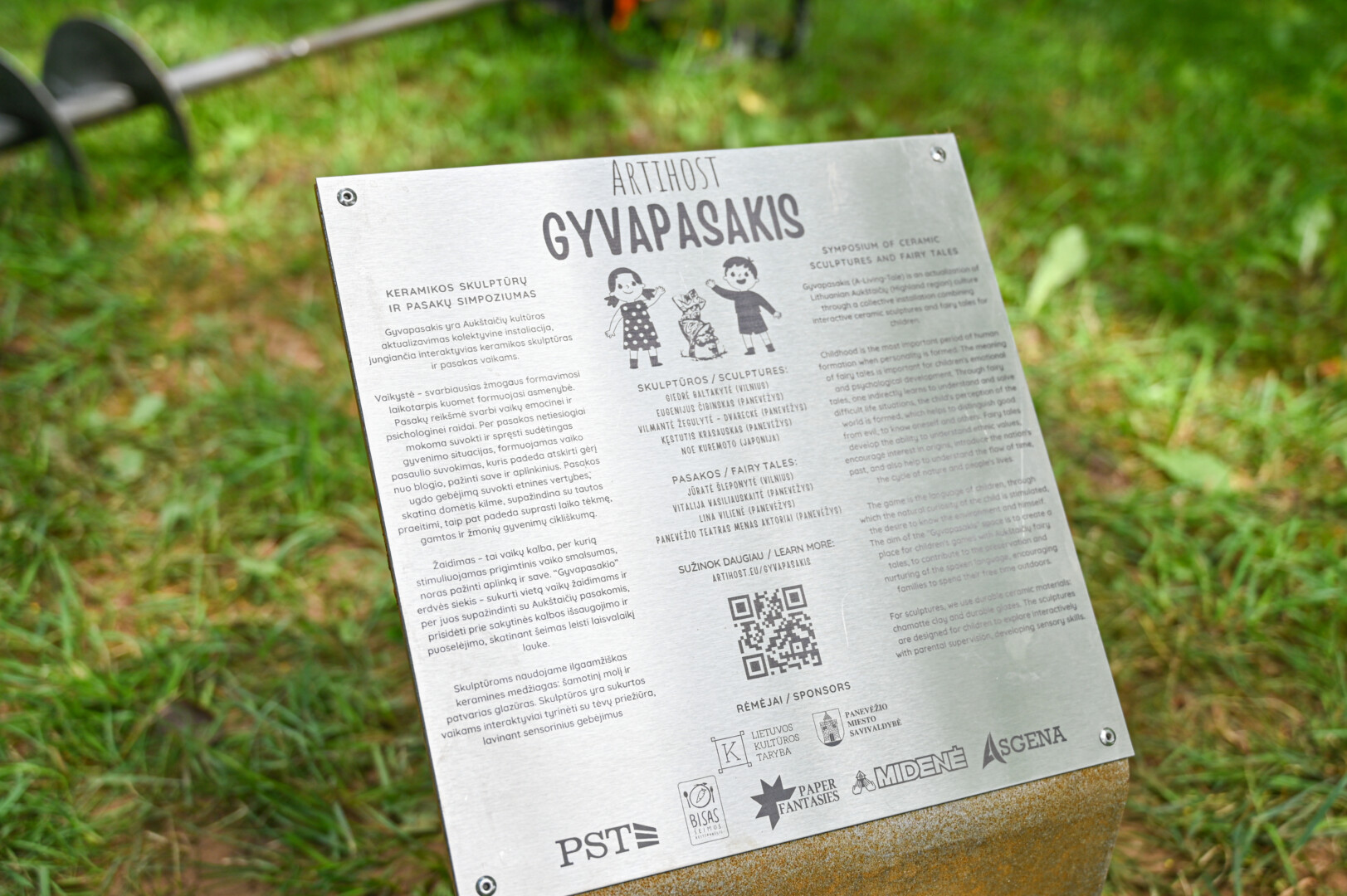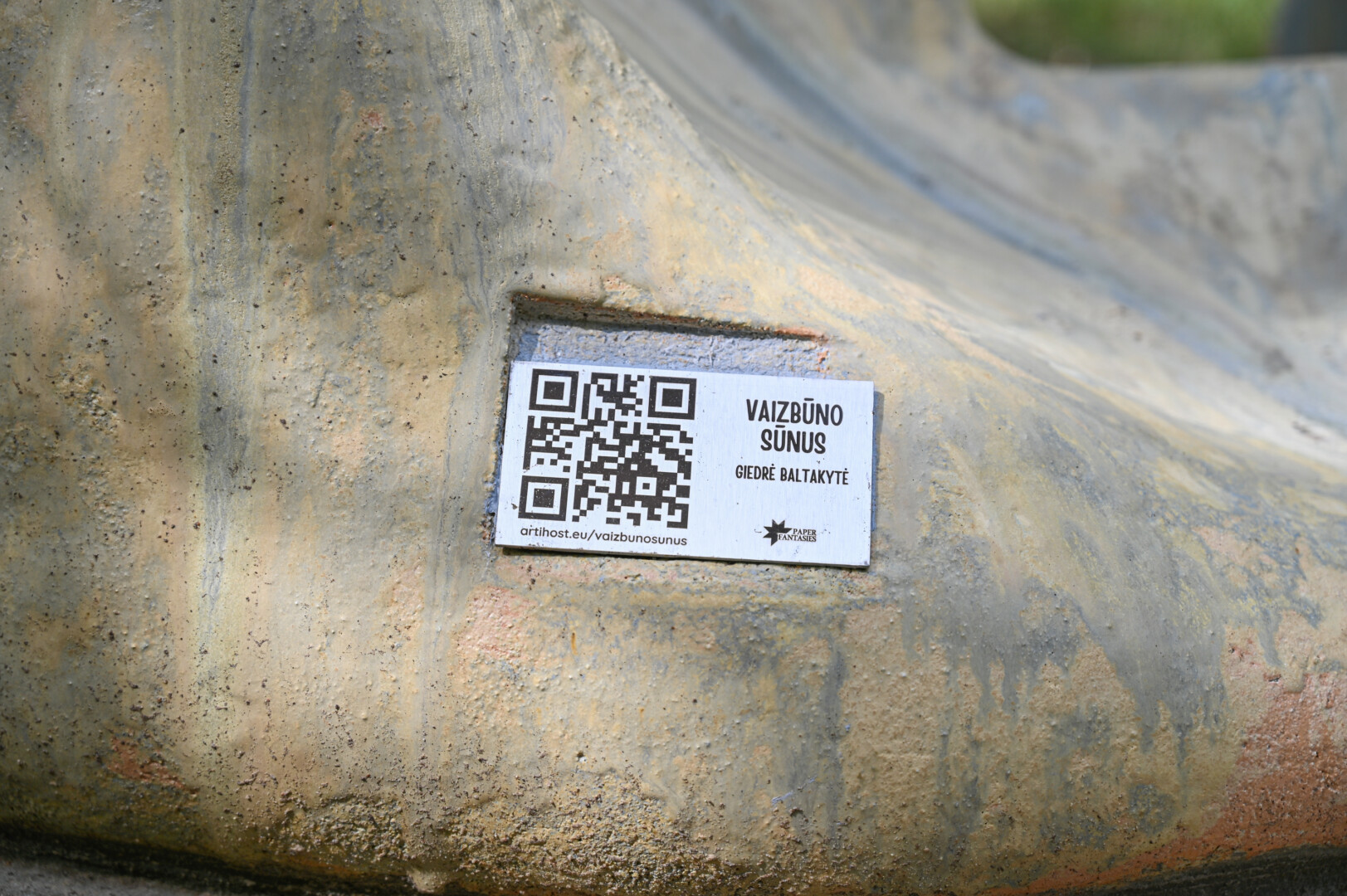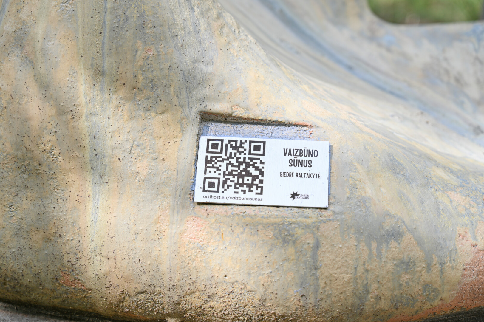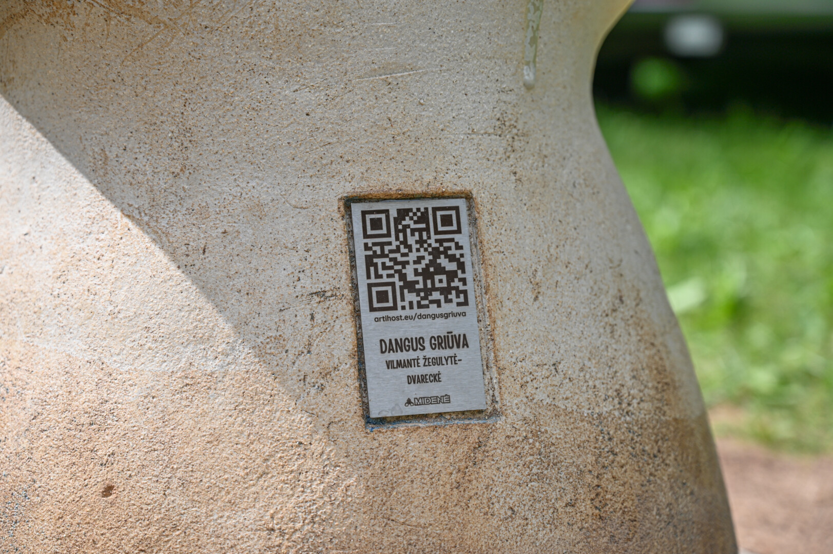 Prie kiekvienos skulptūros pritvirtinta metalinė plokštelė su QR kodu.