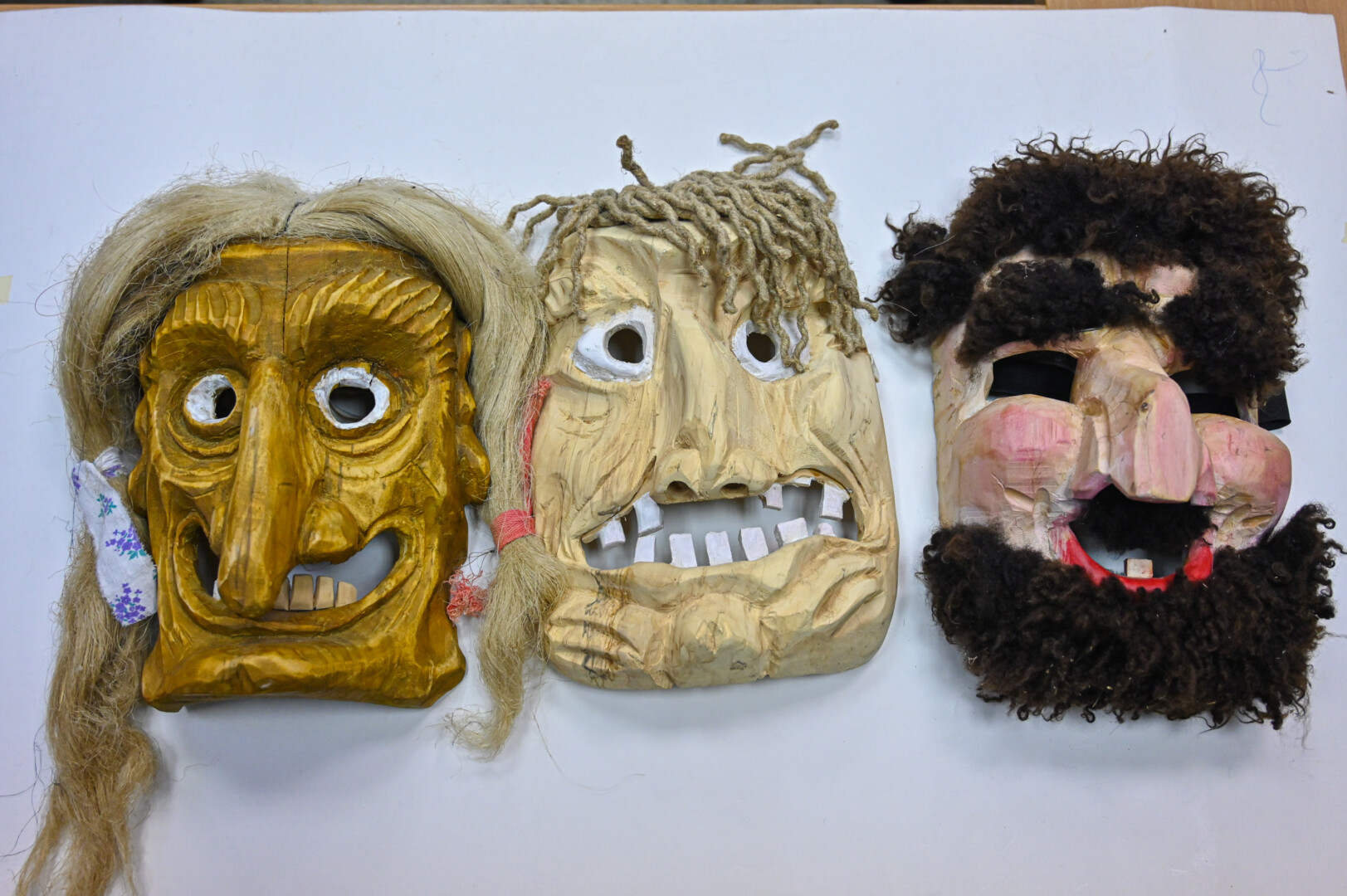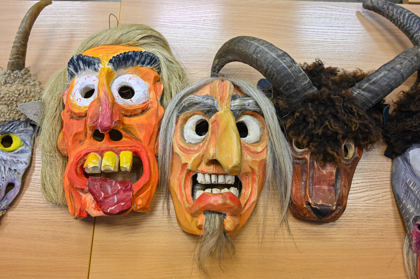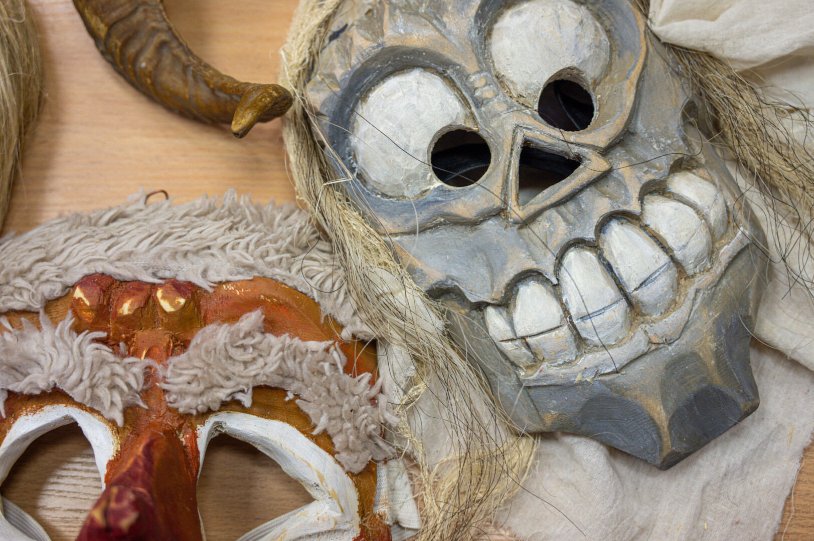 Kokių tų kaukių tik nebūdavo – iš medžio žievės, avikailio, gyvulių kaukolių, kartono ir kitų medžiagų pagamintos, viena už kitą įdomesnės.