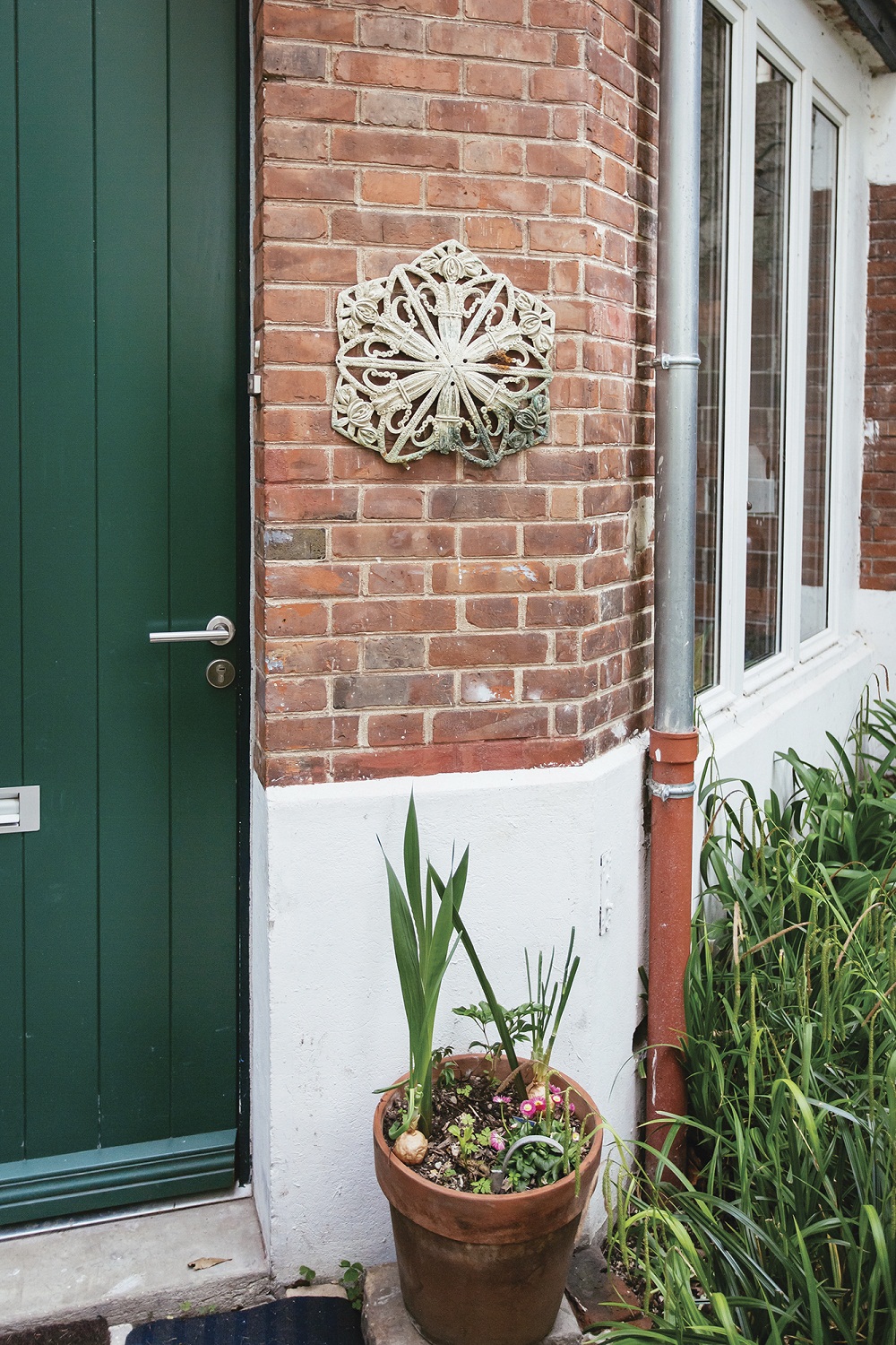 Šeima daug laiko praleidžia šalia namų esančiame sode. „Prieš tai jis buvo stipriai apleistas: genėjome medžius, bandėme jiems suteikti formą, sodinome gėles. Dabar čia auginame pušeles, džiaugiamės kardeliais, – pasakoja Indrė. Kaip vieną didžiausių namo privalumų ji nurodo terasą prie pat Senos, kurioje atšilus orams susirenka kaimynai ir mėgaujasi vienas kito draugija bei lauke gaminamu maistu.