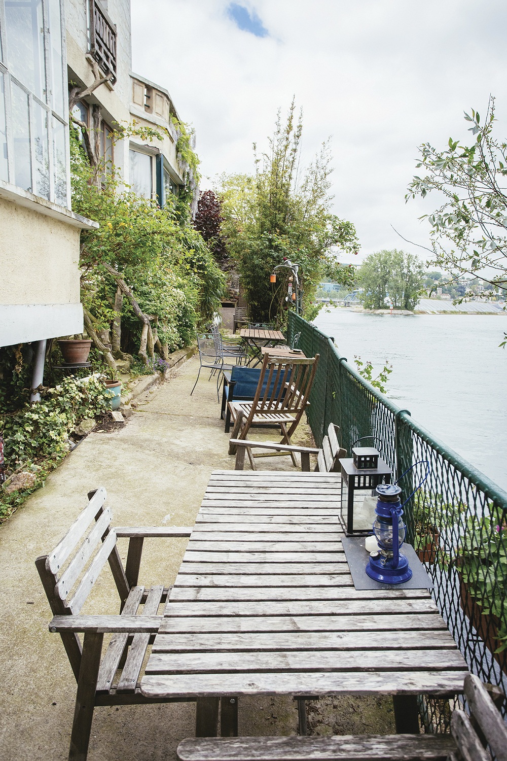 Dėmesio verta ir Sen Žermeno salos, kurioje stovi šeimos namai, istorija. Ši vila pastatyta apie 1850 m., o jos istorija prasidėjo nuo prancūzų aristokrato Louiso, kartu su šeima apsigyvenusio šiame pastate ir taip suteikusio jam vardą ,,Villa Louis“. Vėliau šalia esančioje Seguin saloje buvo pastatyta didžiulė automobilių kompanijos „Renault“ gamykla ir gyventi į Sen Žermeno salą atsikėlė jos darbininkai. Pasak Indrės, name iki šiol galima rasti daugybę to laikotarpio ženklų. ,,Pavyzdžiui, svečių name yra labai daug netradicinių sprendimų: esu beveik tikra, jog viršutiniame aukšte esantį balkoną galėjo susikonstruoti patys darbininkai“, – juokdamasi sako ji.