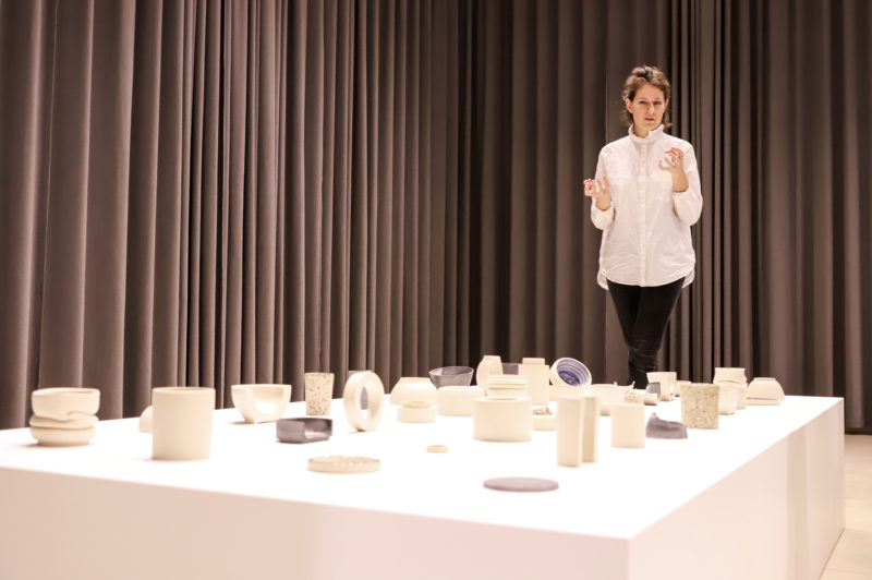 Šiuolaikiniame mene jau nebeužtenka vien estetinio vaizdo, kuris nereikalautų jokių paaiškinimų, būtų suvoktas be kontekstų ir teorinių išvedžiojimų. Ypač sudėtinga šiame laikmetyje anksčiau taikomojo meno kategorijai priskiriamų meno šakų atstovams, kurių kūryboje labai svarbus medžiagiškumas bei amato išmanymas. Keramika – viena iš tokioje pozicijoje atsidūrusių sričių. Daugelio menininkų kūryba šiandien remiasi meninio tyrimo principu. Nenuostabu, kad susitikimai su menininkais tampa tam tikromis paskaitomis. Taip atsitiko ir šią savaitę Panevėžio dailės galerijos Keramikos paviljone vykusiame susitikime su menininkė, parodos autore Monika Gedrimaitė.