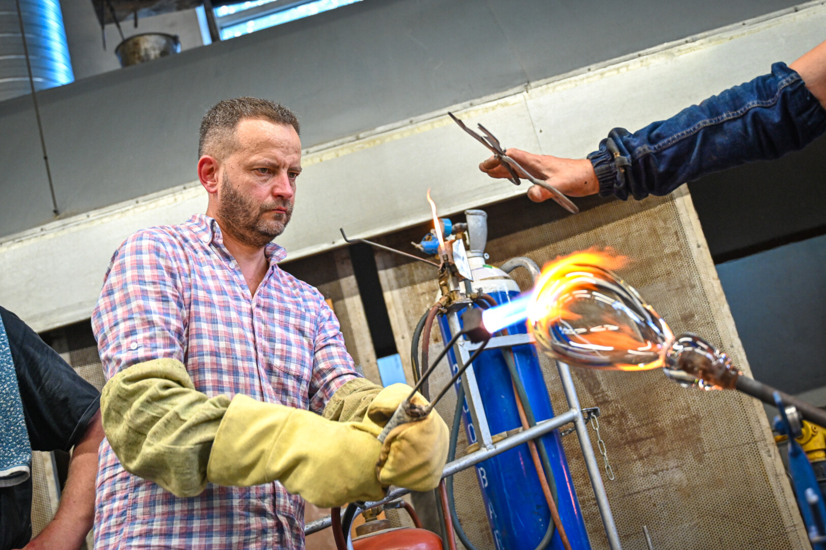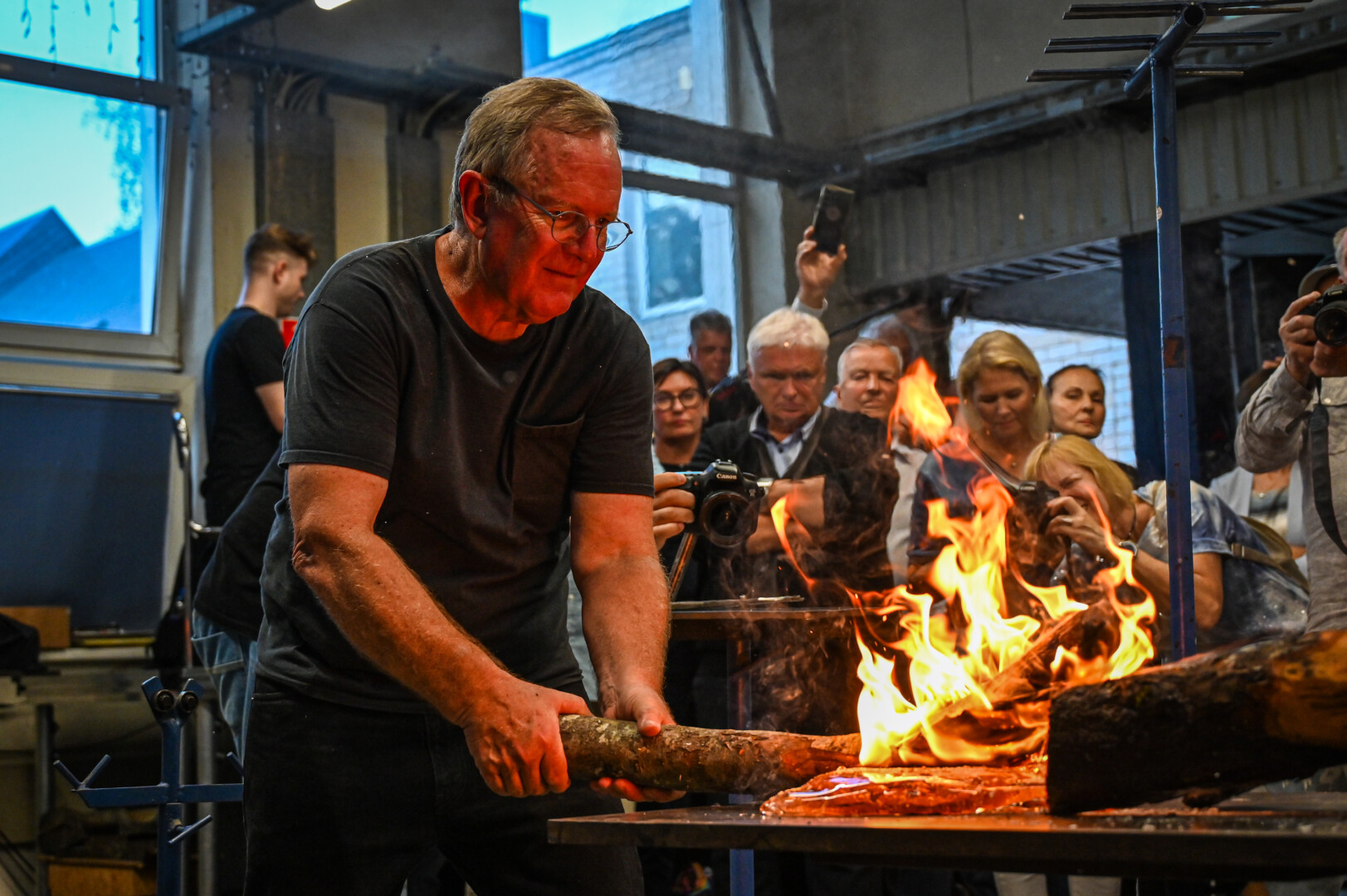 Stiklo meistrai atvykę į meninį simpoziumą visą savaitę ruošia autorinį stiklo kūrinį vienintelėje Baltijos šalyse meninio stiklo studijoje „Glasremis“.