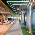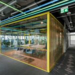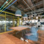 Spalvingame IT įmonės „Helis“ biure griaunamas vis dar stiprus įvaizdis, kad darbo ir pramogų zonos neturi nieko bendro. Pagrindiniame pasitarimų kambaryje darbuotojai vietoj kėdžių gali rinktis sūpynes, o darbo stalas primena teniso stalą. Pasak architekto, tai kuria smagesnę atmosferą.