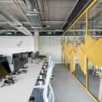 Projektuojant biurą sukurta atvira erdvė, kuri padalyta į mažesnes zonas, siekiant suvaldyti triukšmą, darbuotojus skirstyti pagal atliekamas užduotis, įrengti neformalaus bendravimo erdves. Siekiant išlaikyti atskirų erdvių vientisumą ir sukurti darnią atmosferą, panaudotos stiklinės pertvaros.