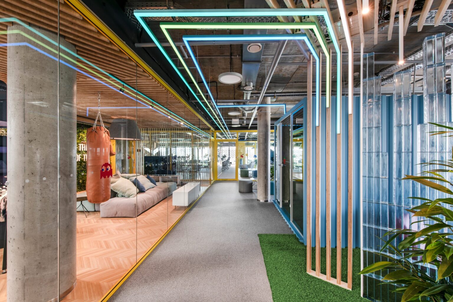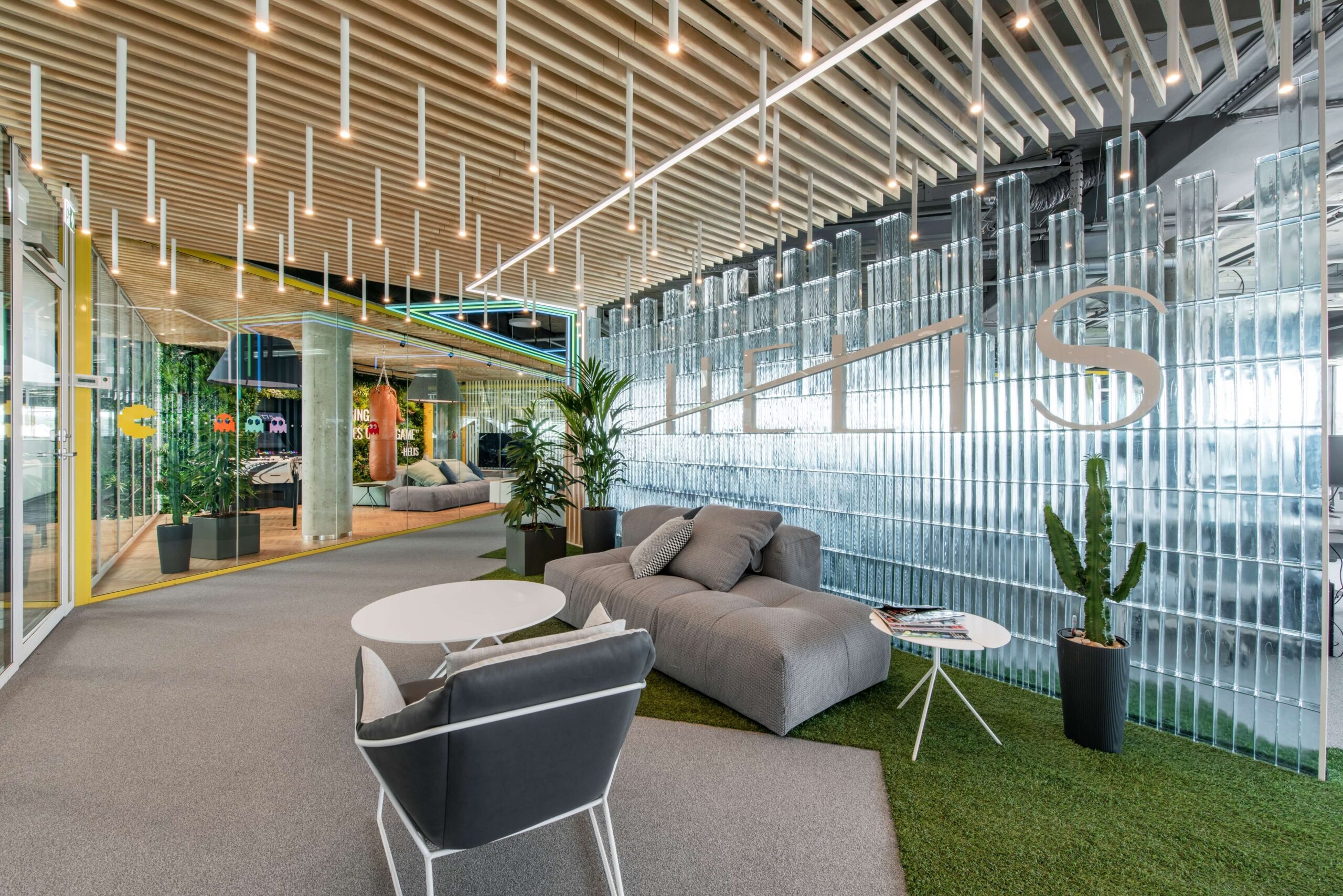 Sūpynės, žaidimų stalai, bokso kriaušės ir žalia veja – tai ne pramogų parko, o IT įmonės „Helis“ biuro interjero akcentai. „Lava studio“ architektai Goda Račkauskaitė ir Mindaugas Leknickas šį biurą pavertė žaisminga erdve, kurioje gera ne tik dirbti, bet ir ilsėtis.
