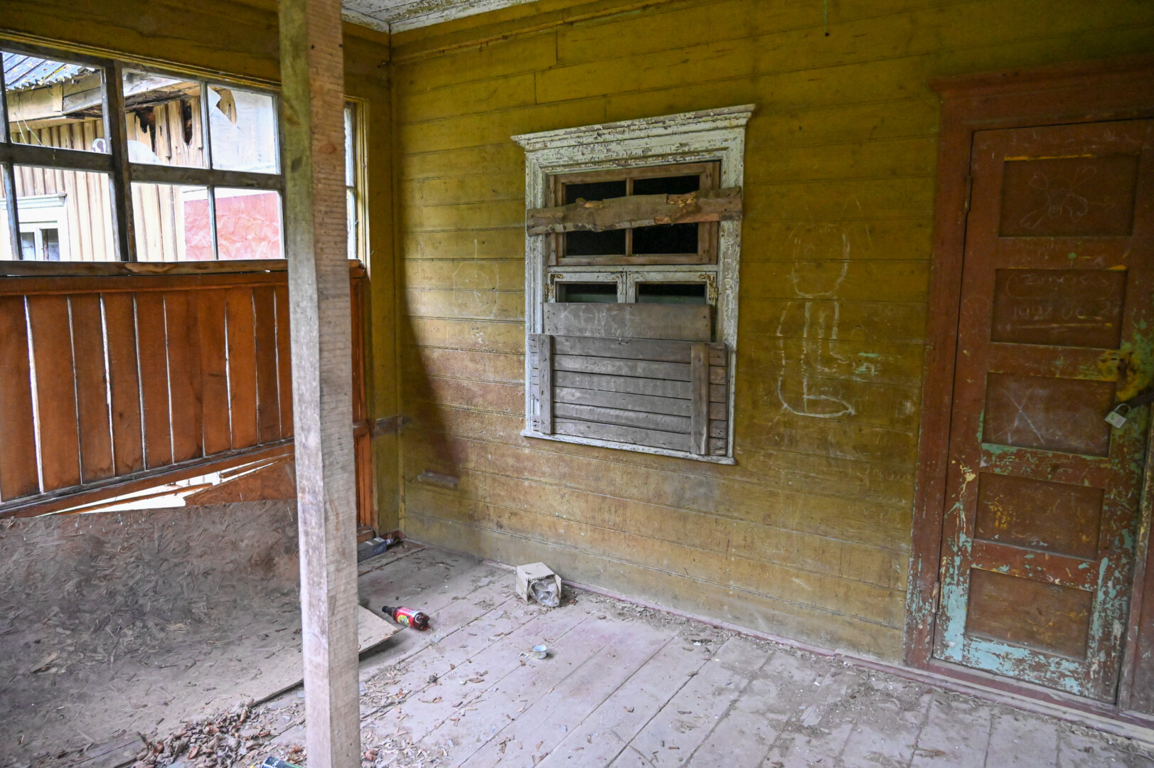 Jos tuščios, kiaurais stogais, o bebaigiančius griūti pastatus okupuoja gamta.