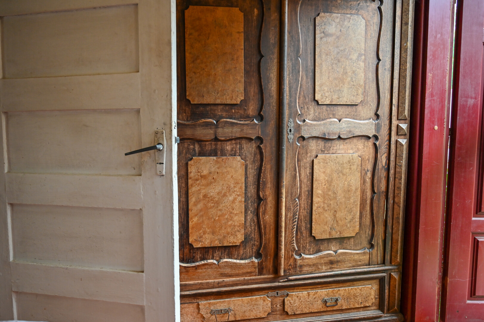 Pati D. Vilčinskienė parodė ir jai atitekusią dvaro spintą. Nors suvarpyta kinivarpų, tačiau tikrai poniška.