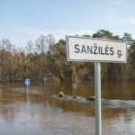 Išsiliejusi Sanžilė apsėmusi pievas, o prie maudyklų esančios persirengimo kabinos atrodo tarsi stovėtų ežero viduryje.