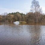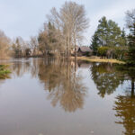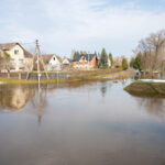 Važiuojant keliu Panevėžys–Šiauliai, matyti apsemti Berčiūnai.