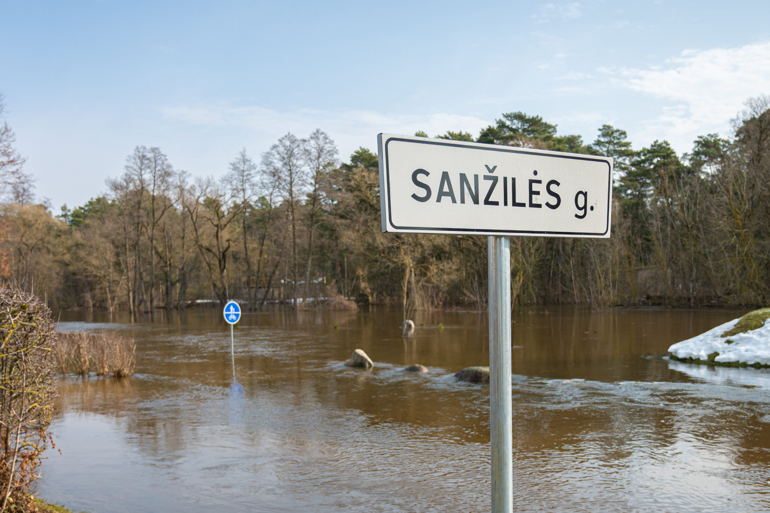 Kai kur mieste apsemtos įprastai pavasarį užliejamos vietos – dviračių takai palei upę, po vandeniu atsidūrusi prieplauka Taikos al.