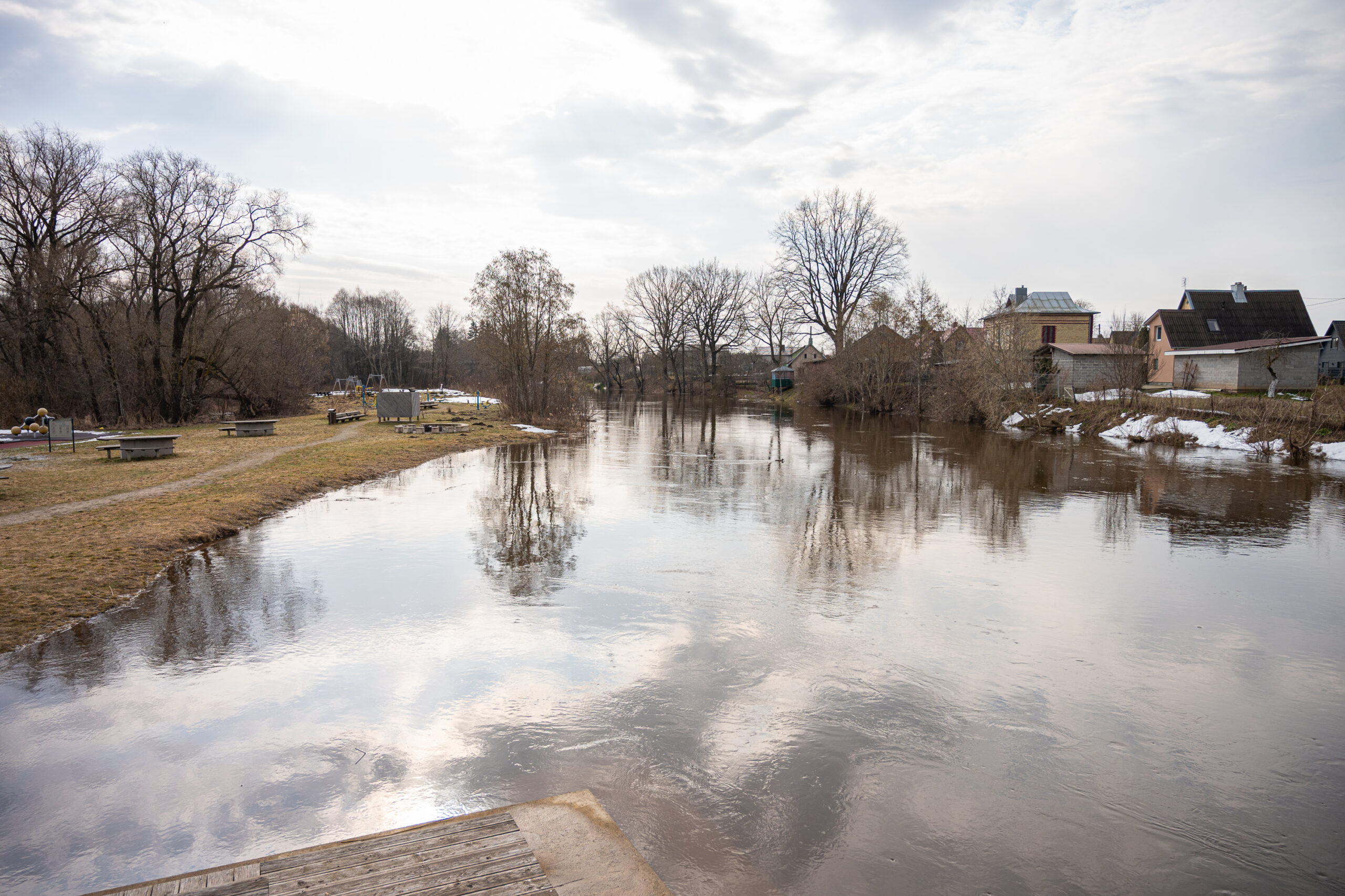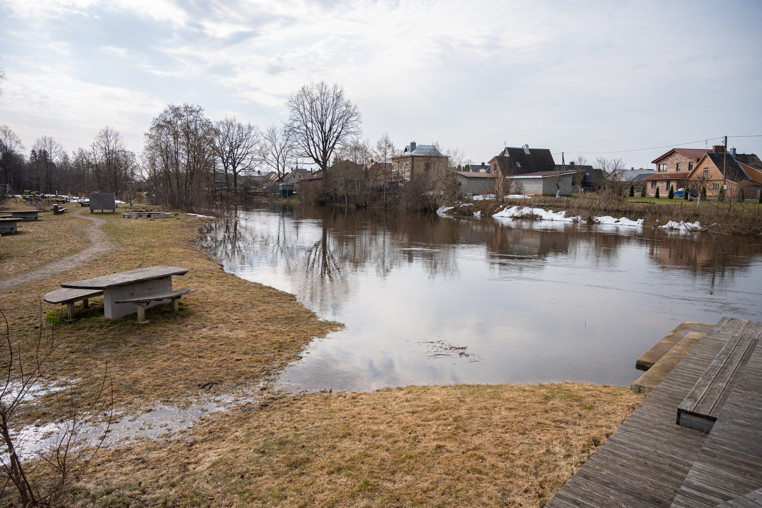 Žvelgiant į gyvenvietę nuo tilto, regis, kad apačioje – ne upė, o tikras ežeras.
