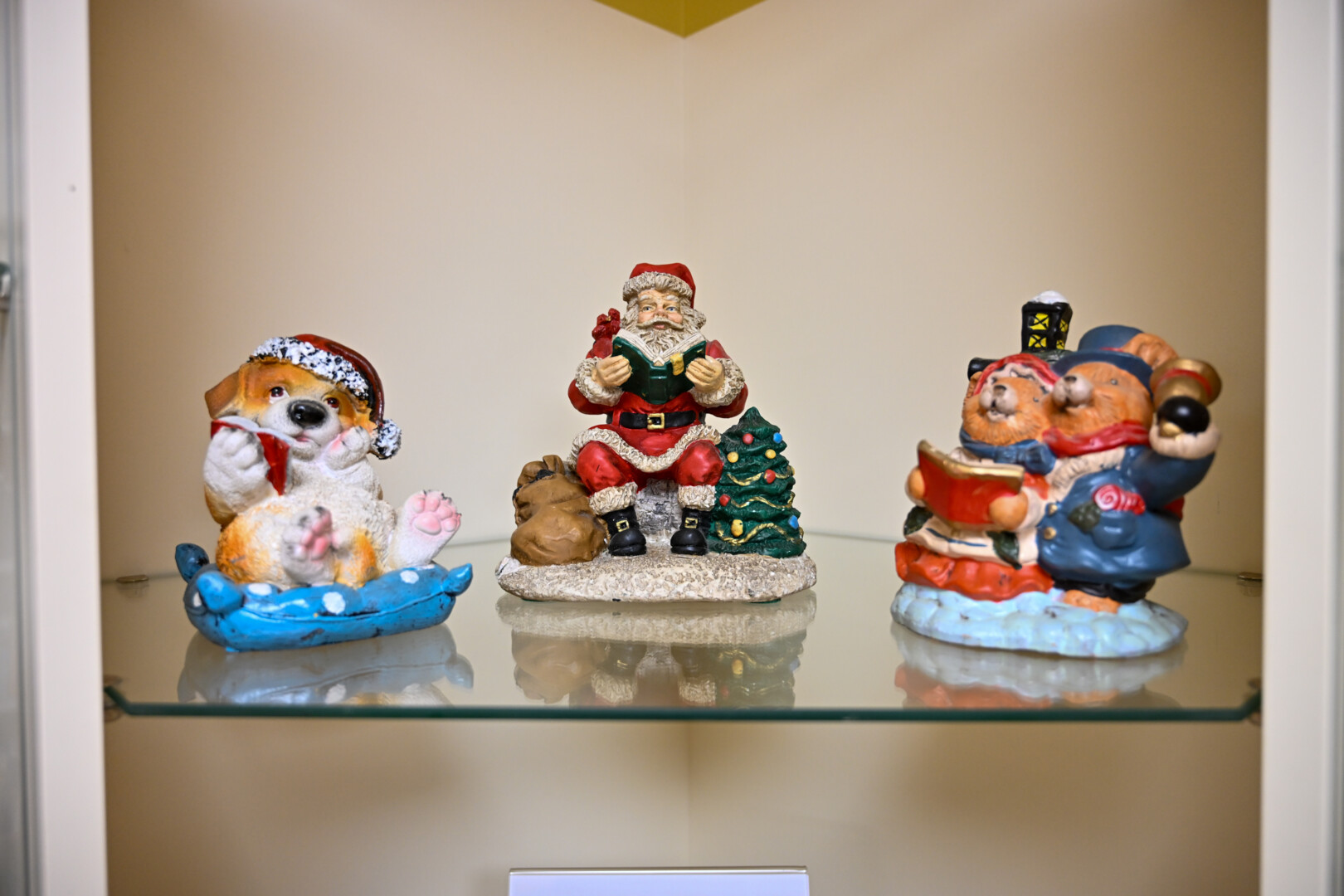 Ne visi jos kolekcijos eksponatai yra vien puošmena. Tarp jų yra ir atliekančių funkciją. Tokie yra laikrodžiai. Kiekviename jų būtinai pavaizduota atversta knyga. Negana to, jie neklysdami rodo laiką.