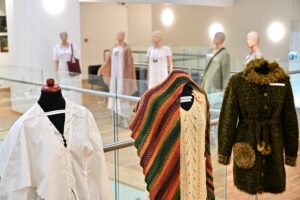 Pati A. Virbalienė – žinoma mezgėja. Parodoje ji pristato savo garsiąsias originalias riešines, pirštines, kitus mezginius, kuriuose išlaiko tradicinius raštus.