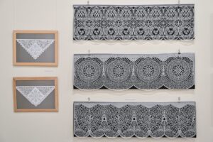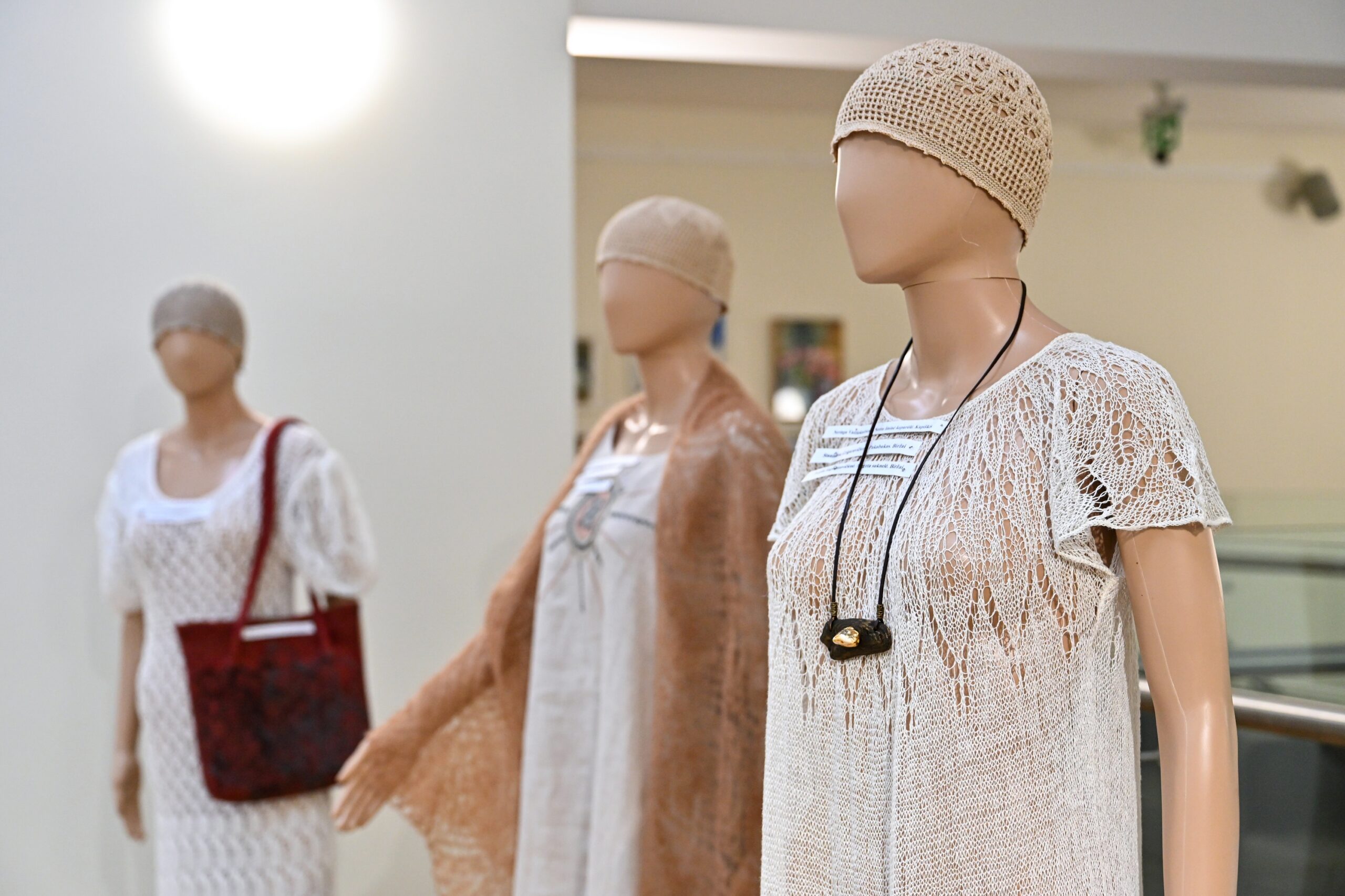 Pati A. Virbalienė – žinoma mezgėja. Parodoje ji pristato savo garsiąsias originalias riešines, pirštines, kitus mezginius, kuriuose išlaiko tradicinius raštus.