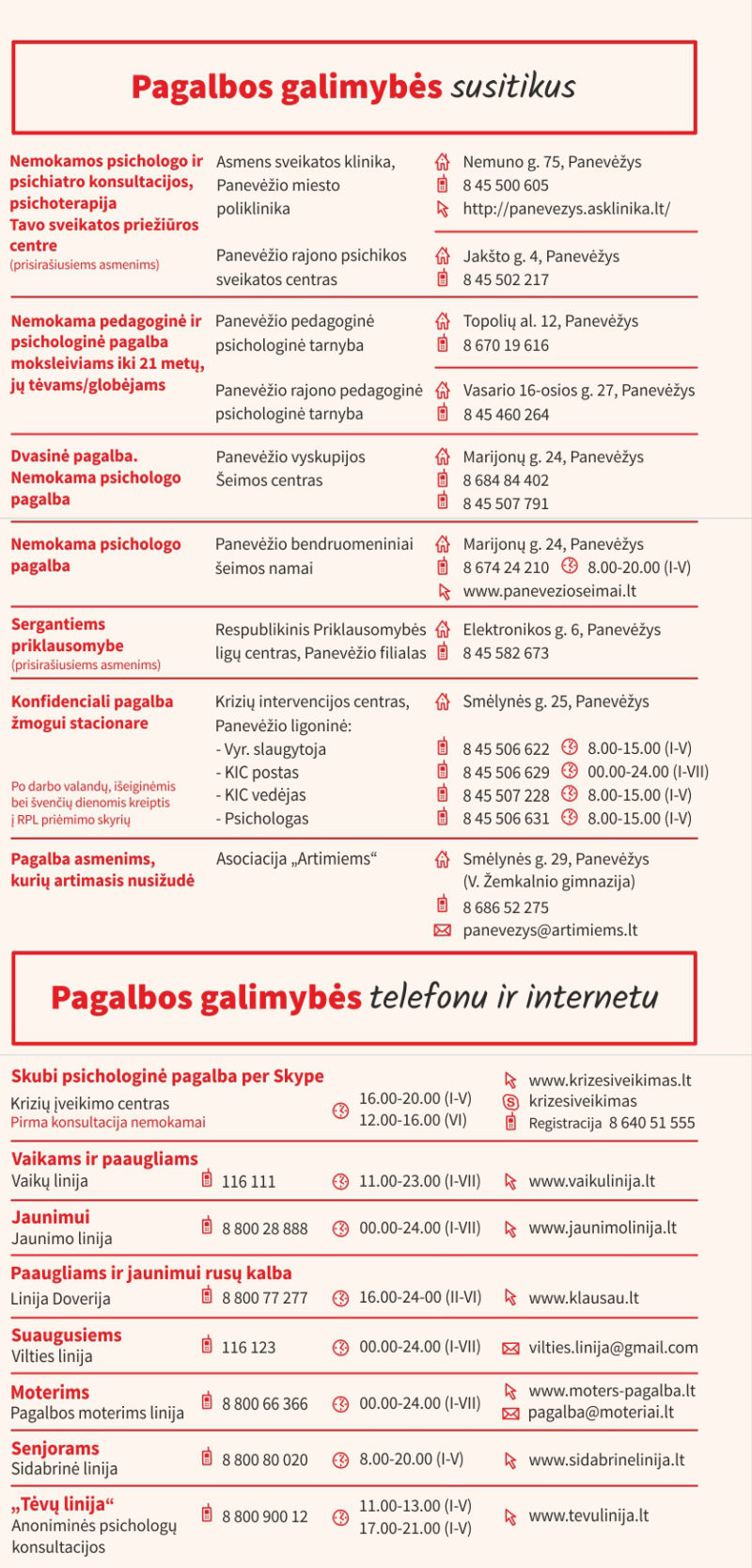 Nemokama ir konfidenciali priklausomybių konsultanto paslauga bei kita naudinga informacija teikiama Panevėžio miesto savivaldybės visuomenės sveikatos biure, tel.: 8 45 463281 (specialistė Monika Gritėnaitė)