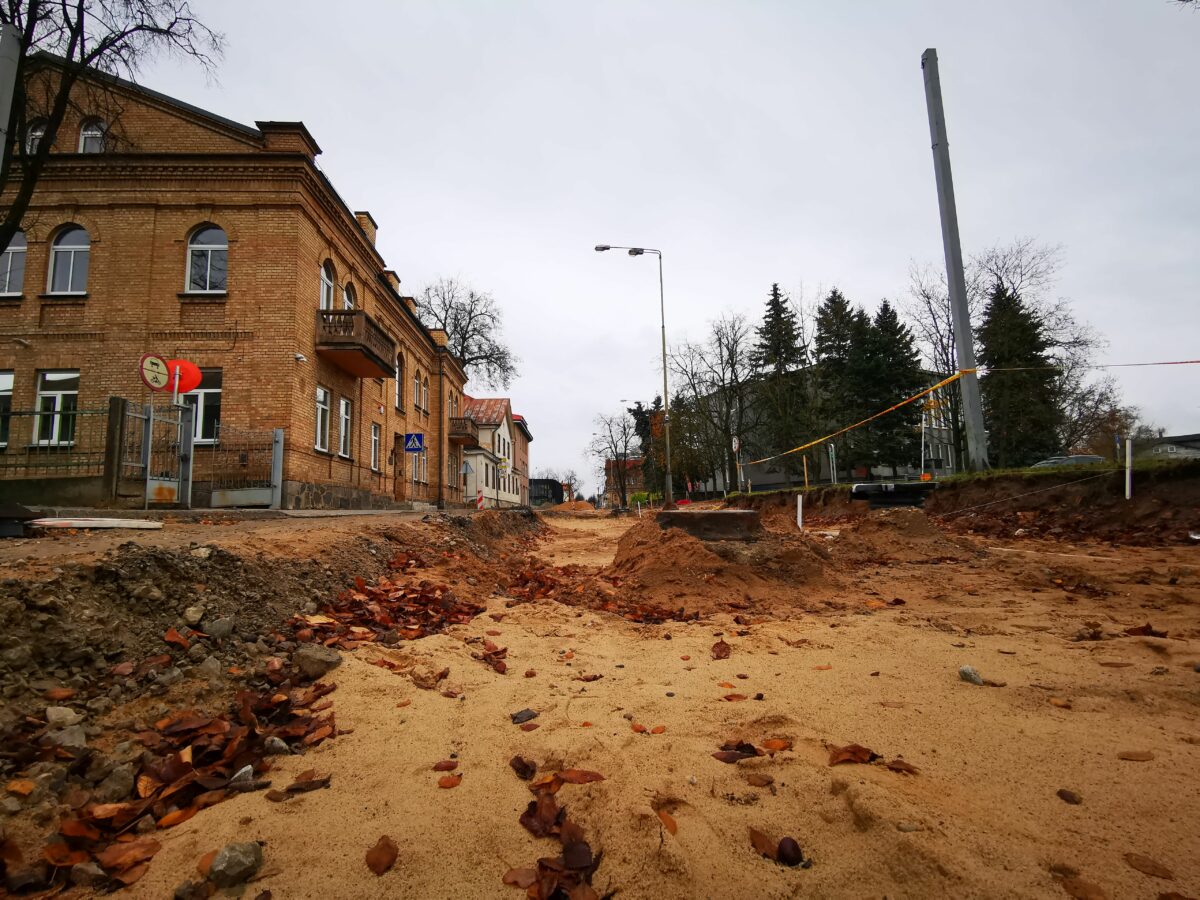 „Dabar gali būti, kad pagrindus šitoje gatvės atkarpoje pradės rengti tik gegužę, kai darbą baigs archeologai“, – sako D. Linkonas.