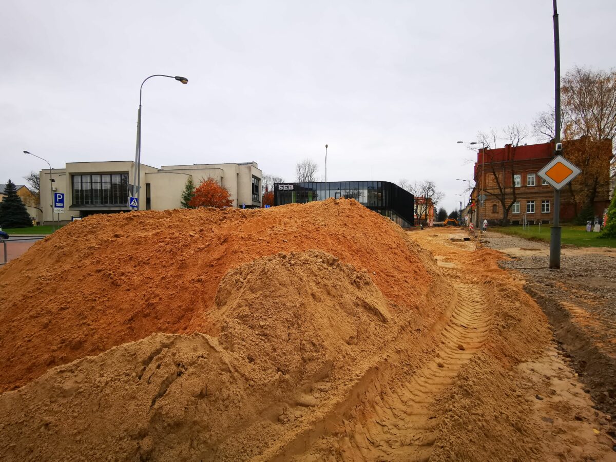„Dabar gali būti, kad pagrindus šitoje gatvės atkarpoje pradės rengti tik gegužę, kai darbą baigs archeologai“, – sako D. Linkonas.