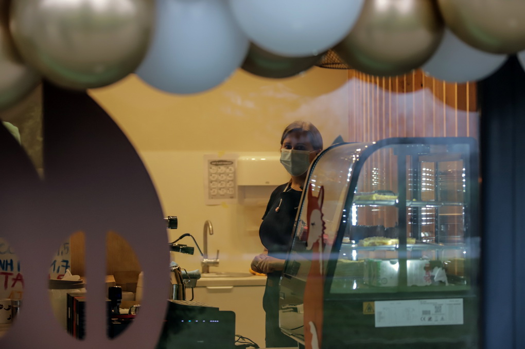 Naujakuriai į ką tik atidarytą ir dažais tebekvepiančią kavinukę ilgesniam laikui svečių pakviesti negali. Tokio tipo įmonėms leidžiama tiekti maistą ir gėrimus tik išsinešti. Savo kavinėje kol kas šeimininkauja pati Jūratė.