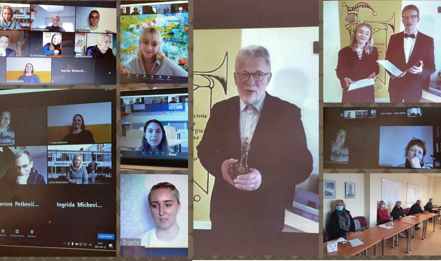 Virtualaus renginio pradžioje gimnazijos direktorius Vytautas Raišys pasveikino konkurso dalyvius ir paskatino juos ieškoti kūrybos prasmės, teatro ryšių kasdieniame gyvenime ir palinkėjo nebijoti dalintis įgyta patirtimi bei žiniomis.