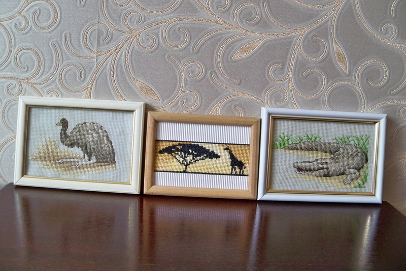 Bibliotekos skaityklos sienas bei lentynas buvo papuošę apie penkiasdešimt įvairaus dydžio, spalvų, vaizdų siuvinėtų paveikslų, skirtų per turistines keliones aplankytoms šalims prisiminti. Kiekviename tokiame darbelyje išsiuvinėtas su aplankyta valstybe susijęs simbolis.