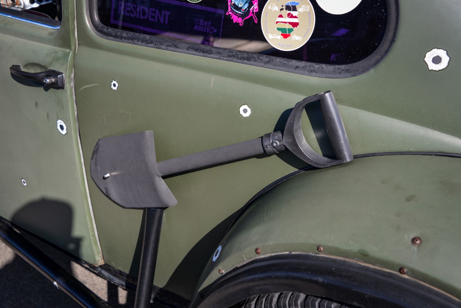 Netoliese stovi gerokai kuklesnių dydžių, tačiau, regis, visiems ne tik karo atvejams paruošas ir visas negandas galintis įveikti „Volkswagen Baja“, kurį automobilio šeimininkas Aidas Kandraška iš Rokiškio prieš dvejus metus įsigijo viename Švedijos aukcionų.