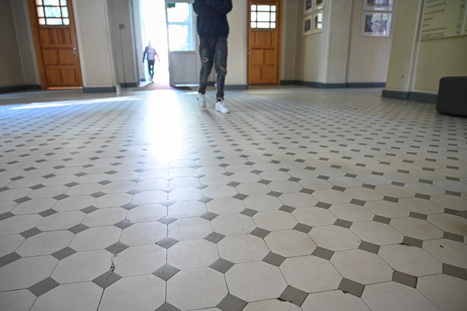 Pirmajame aukšte plytelių grindų danga – tokia pati, kokia buvo gimnaziją vos tik pastačius. Tos pačios išlikusios ir įspūdingos laiptų baliustrados.