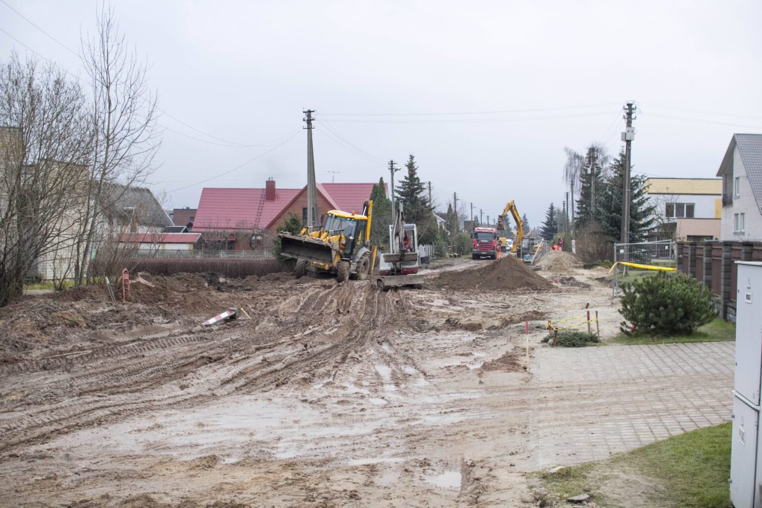 Dabar remontuojama Stetiškių gatvės atkarpa ties aerodromu. Šioje vietoje automobilių eismas draudžiamas. Tad gyventojai savo mašinas palieka aplinkinėse aikštelėse ir per purvyną brenda iki namų.
