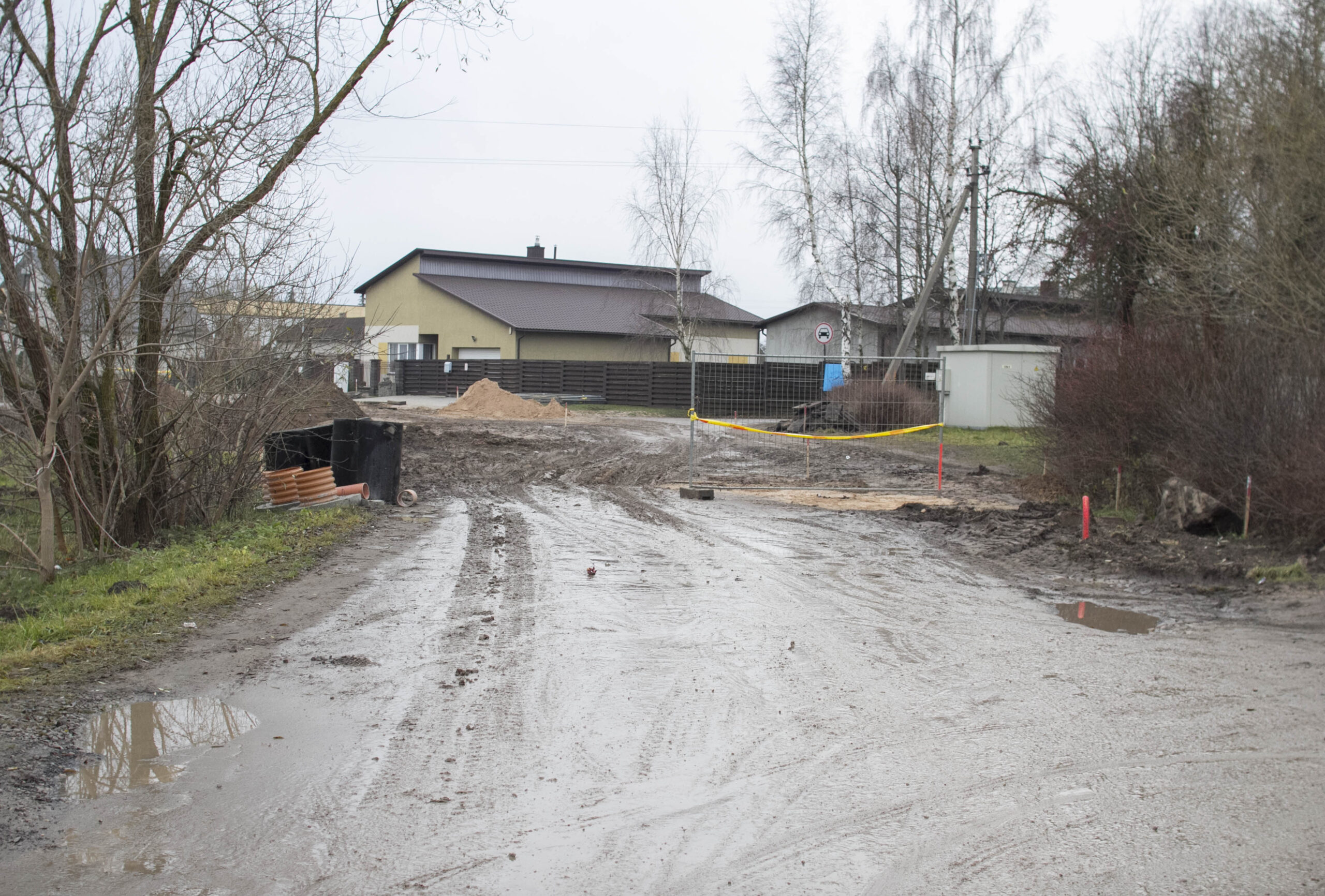 Dabar remontuojama Stetiškių gatvės atkarpa ties aerodromu. Šioje vietoje automobilių eismas draudžiamas. Tad gyventojai savo mašinas palieka aplinkinėse aikštelėse ir per purvyną brenda iki namų.