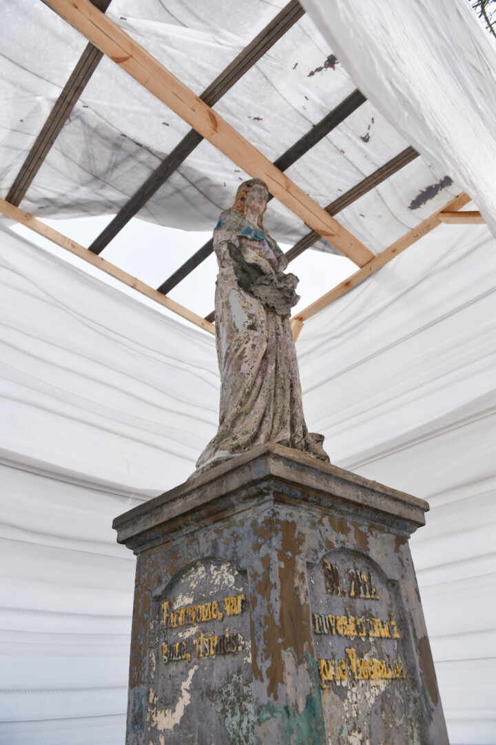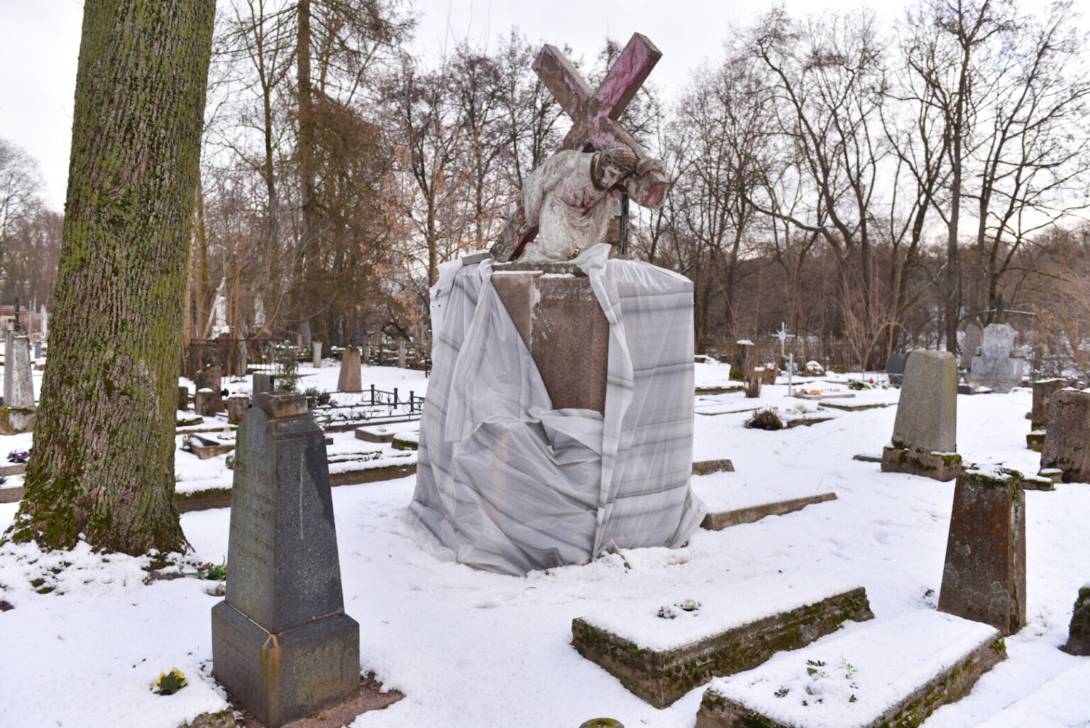 Tie, kas pastaruoju metu apsilankė Sporto gatvėje esančiose senosiose miesto kapinėse, neabejotinai atkreipė dėmesį į šioje amžino poilsio vietoje pastatytas tris didžiules plastiku dengtas palapines. Po jomis, tarsi savotiškuose šiltnamiuose, atsidūrė trys išskirtiniai praėjusio amžiaus vidurio paminklai – antkapinės statulos.