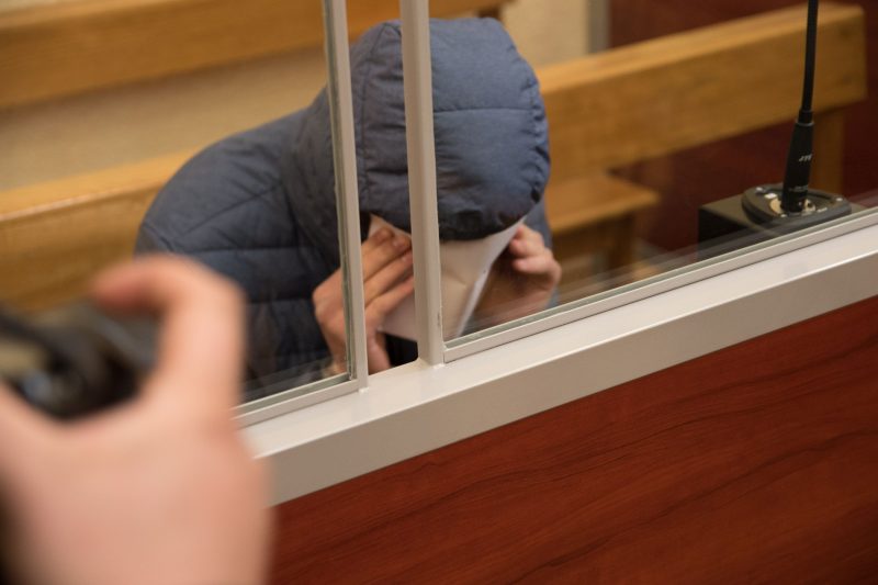 Į teismą įtariamieji buvo atvedami surakinti antrankiais po vieną maždaug kas valandą. Visi trys kiek įmanoma slėpė veidus nuo žurnalistų. Nors įtariamieji sulaikyti jau nuo pirmadienio, nė su vienu pasimatyti į teismą artimieji neatėjo.