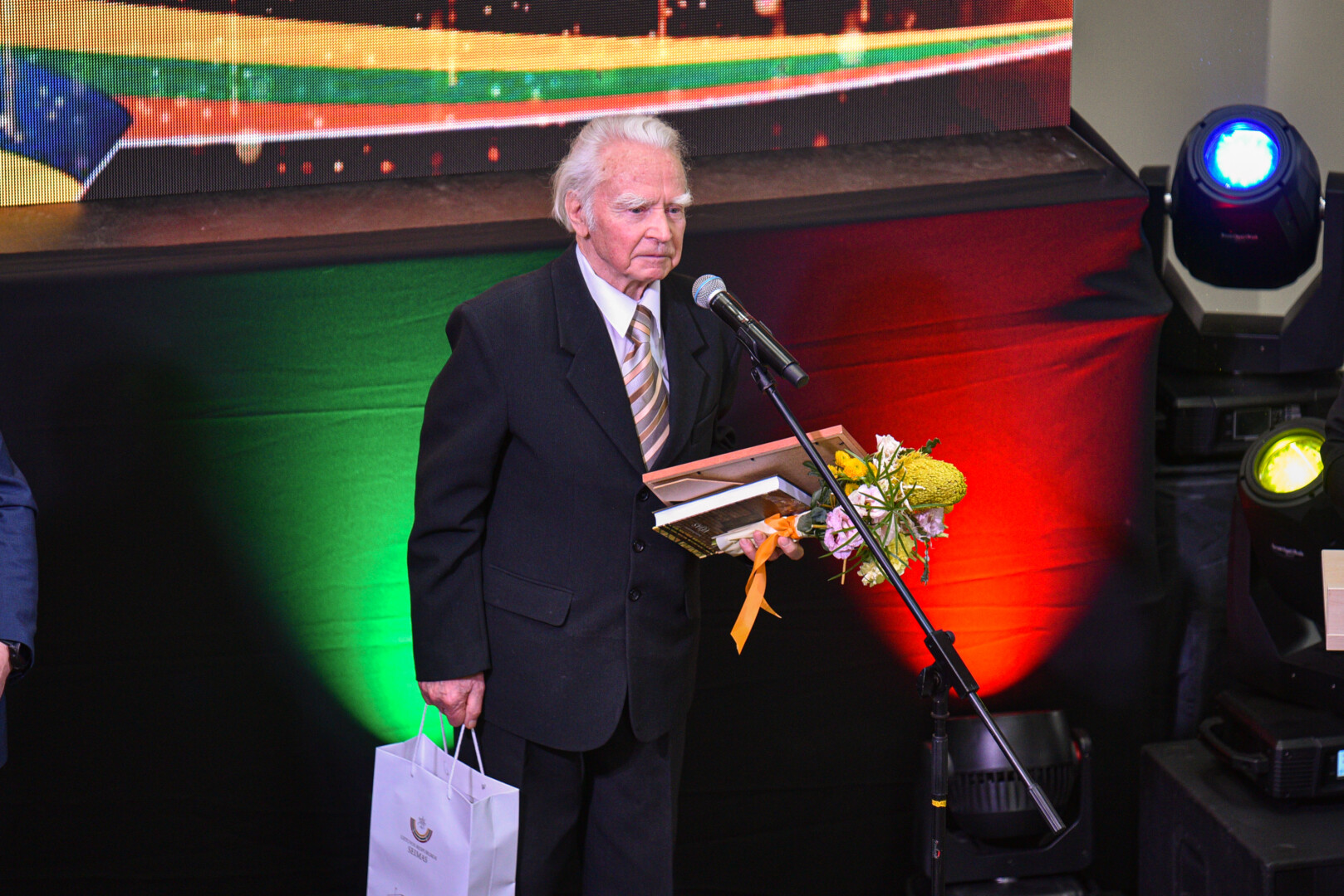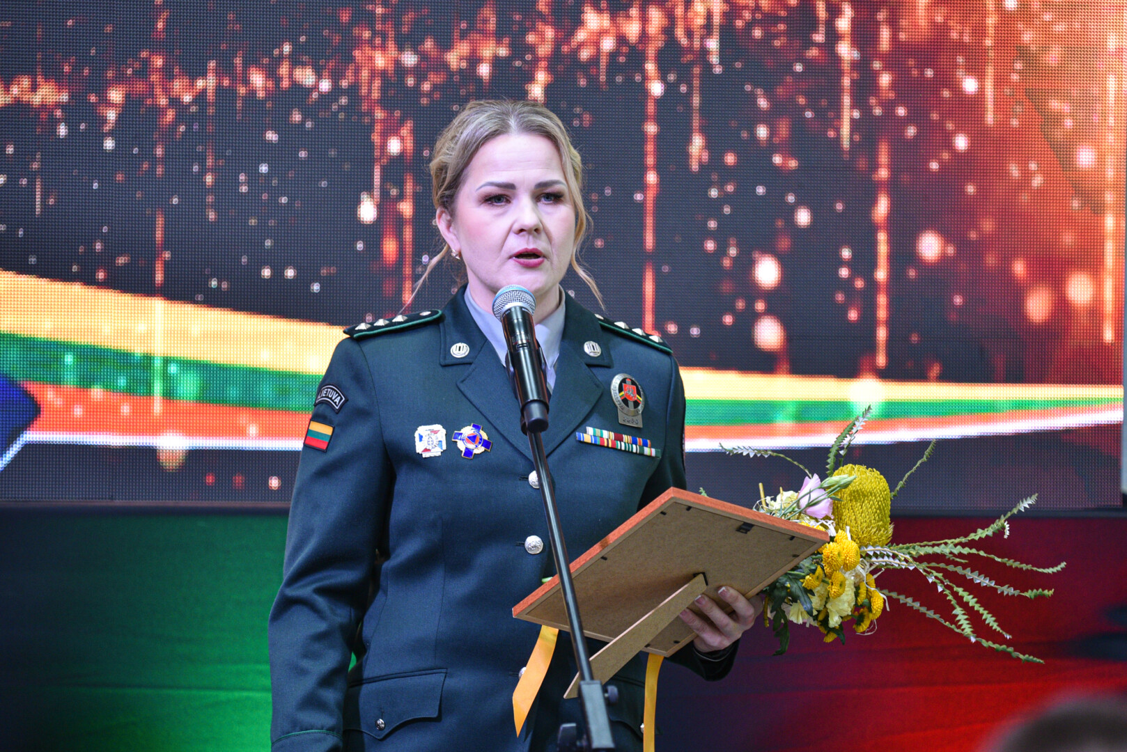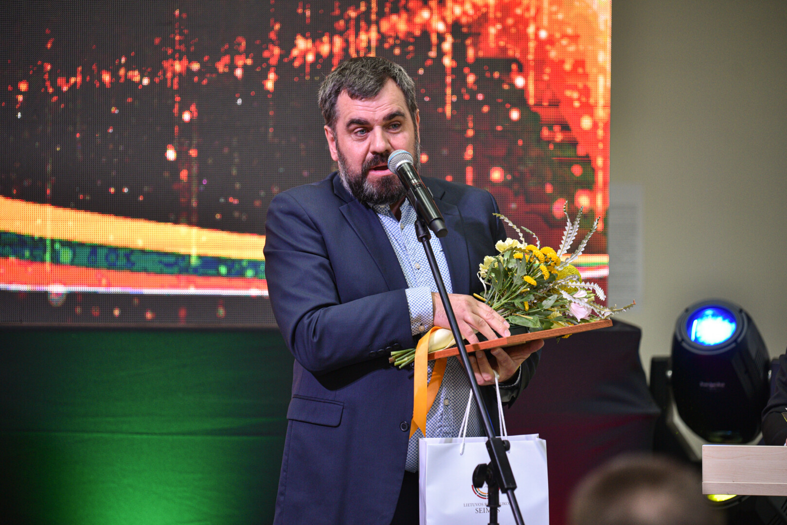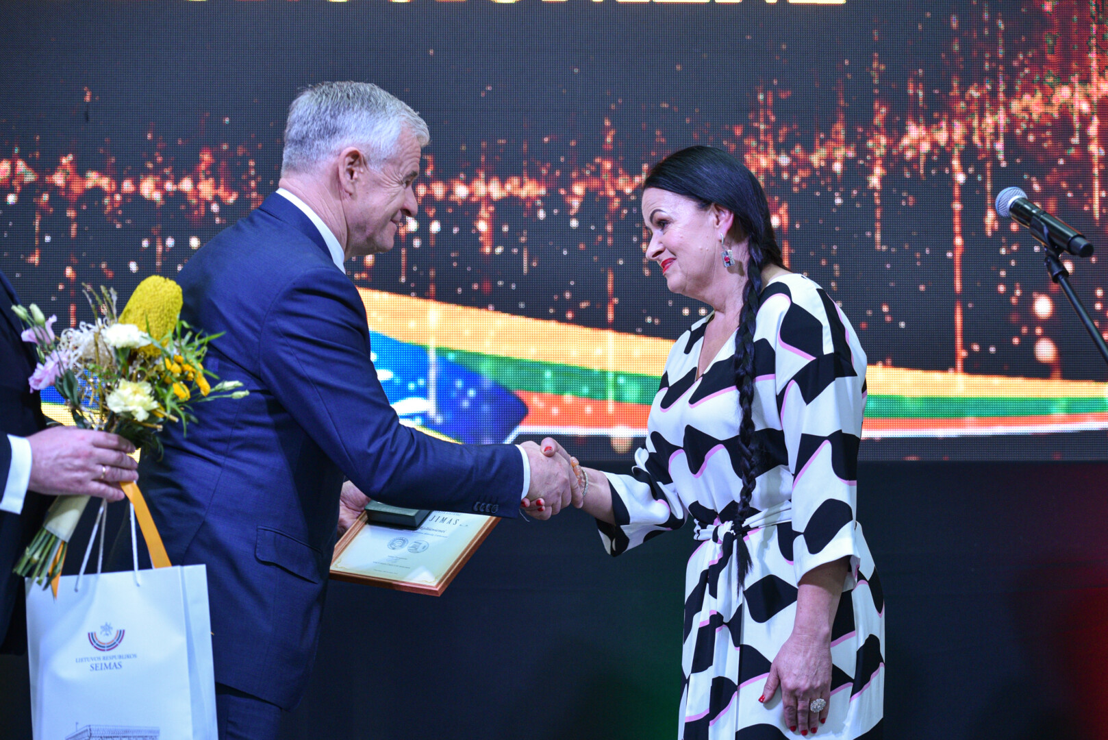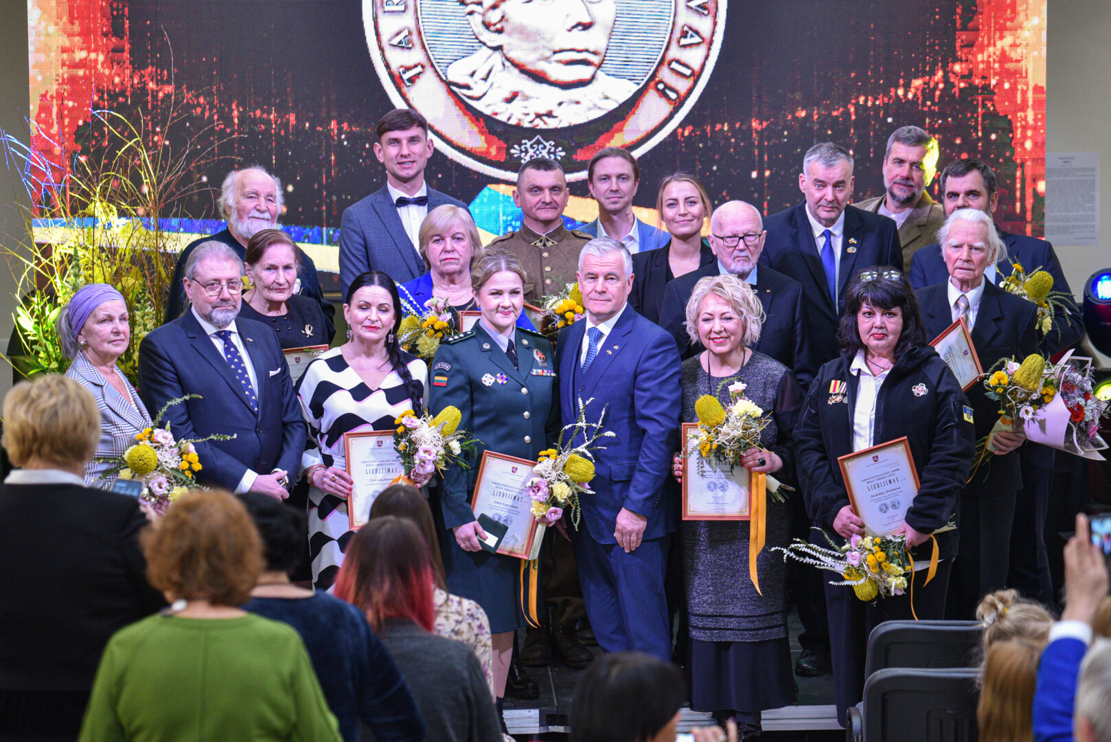 „Sveikinu Jus tradicinėje Gabrielės Petkevičaitės-Bitės atminimo medalių „Tarnaukite Lietuvai“ teikimo ceremonijoje. Šiandien susirinkome pagerbti žmonių, kurių darbai, jų vertybėmis grįsta tarnystė Lietuvai įkvepia mus ir tampa pavyzdžiu. Tegul šie apdovanojimai tampa Jūsų darbų įvertinimu ir visų mūsų pagarbos ženklu. Dėkoju už Jūsų indėlį kuriant Gabrielės Petkevičaitės – Bitės idealais grįstą Lietuvą“, – sveikinimo kalbą sakė Panevėžio miesto meras Rytis Račkauskas.
