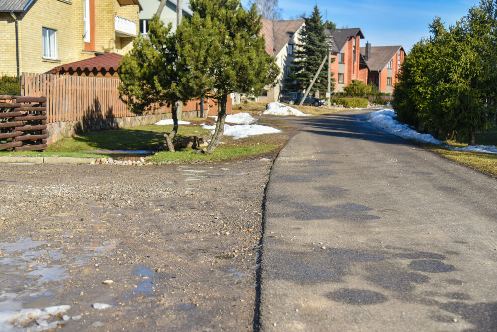 Taip ir nesulaukę sugrįžtančių kelininkų, kai kurie gyventojai patys išsiasfaltavo ar trinkelėmis išsiklojo įvažas. O tebelaukiantiems sudėtingiausia pavasariais, kai tuos kelis metrus nuo gatvės iki namo tenka bristi per purvynus. Algis irgi jau ne kartą vežėsi skaldos, tačiau jai susimaišius su žemėmis po kiek laiko net nebesimato, kad kas daryta.