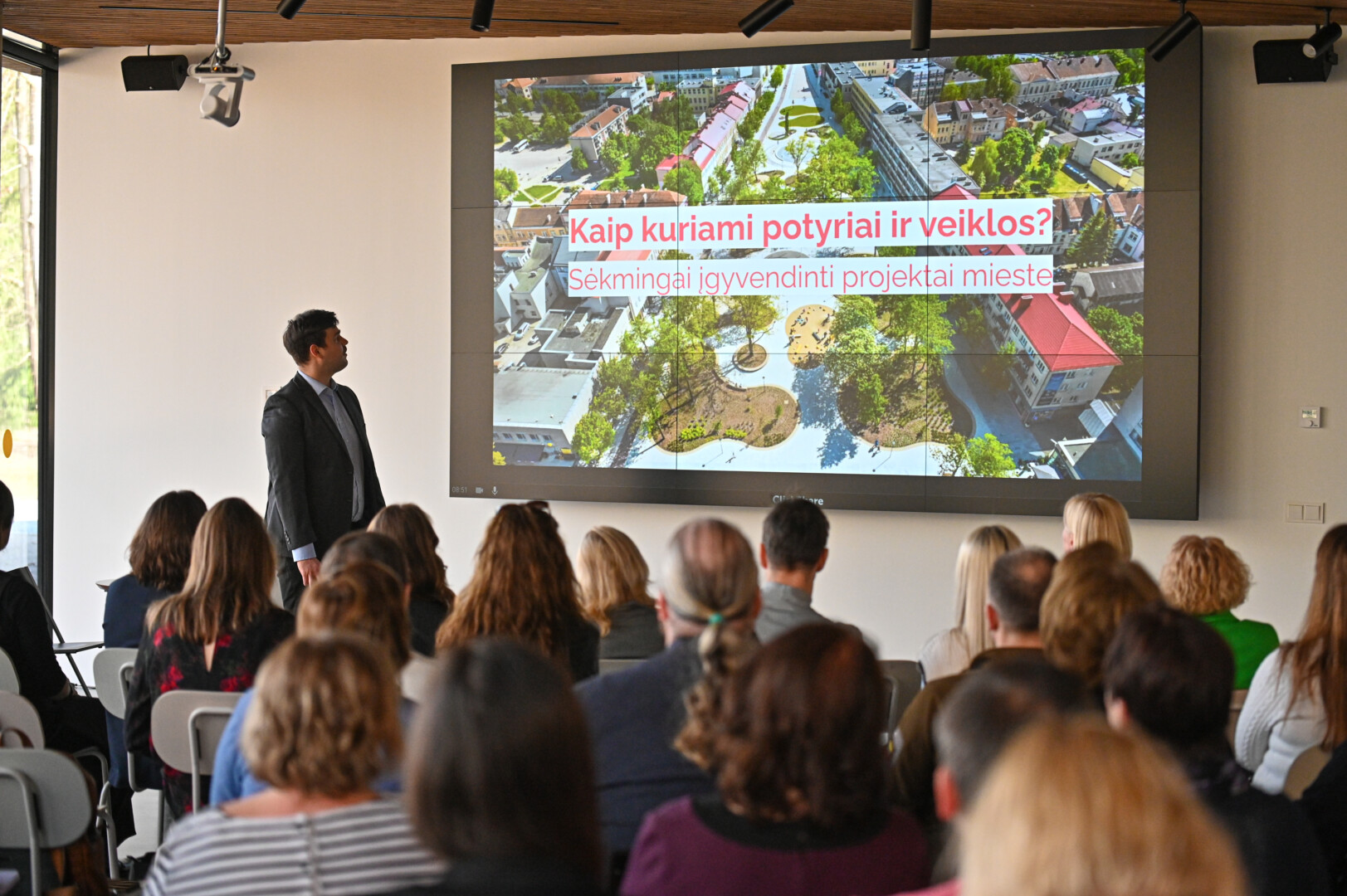 Kaip kultūros paveldo aktualizavimas ir įveiklinimas prisideda bei kuria miesto gyvybingumą, seminaro dalyviams pristatęs Panevėžio miesto savivaldybės administracijos Teritorijų planavimo ir architektūros skyriaus vedėjo pavaduotojas Augustas Makrickas atkreipė dėmesį į seno ir naujo dermę.