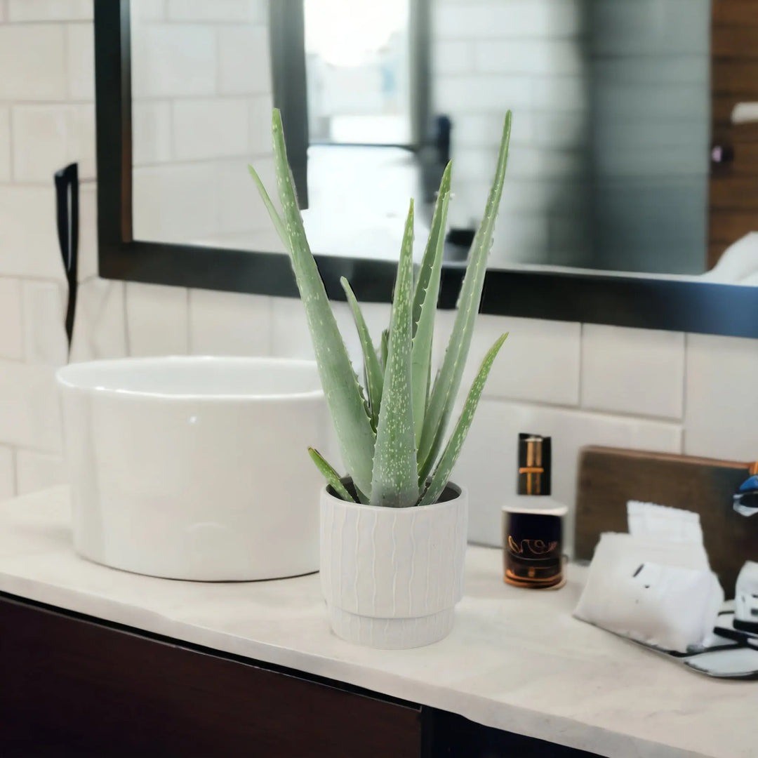 Kaip sukulentas, alavijas gali atlaikyti ekstremalias vonios kambario be langų sąlygas.